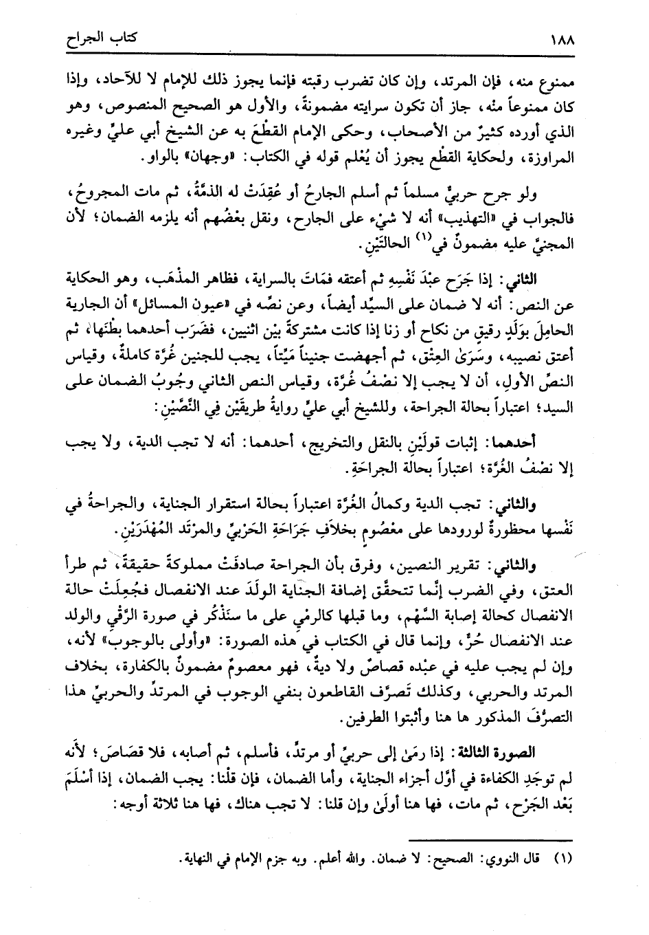 ممنوع منه، فإن المرتد، وان كان تضرب رقبته فإنما يجوز ذلك للإمام لا للآحاد، وإذا كان ممنوعاً مته، جاز أن تكون سرايته مضمونةً، والأول هو الصحيح المنصوص، وهو الذي أورده كثيرٌ من الأصحاب، وحكى الإِمام القطْعَ به عن الشيخ أبي عليٍّ وغيره المراوزة، ولحكاية القطْع يجوز أن يعلم قوله في الكتاب: "وجهان" بالواو.