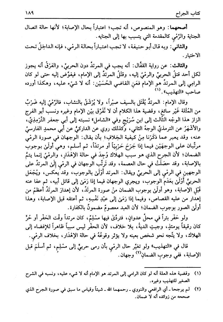 (¬1) وقضية هذه العلة أنه لو كان الرامي إلى المرتد هو الإِمام أنه لا شيء عليه، ونسبه في الشرح الصغير للتهذيب وغيره.