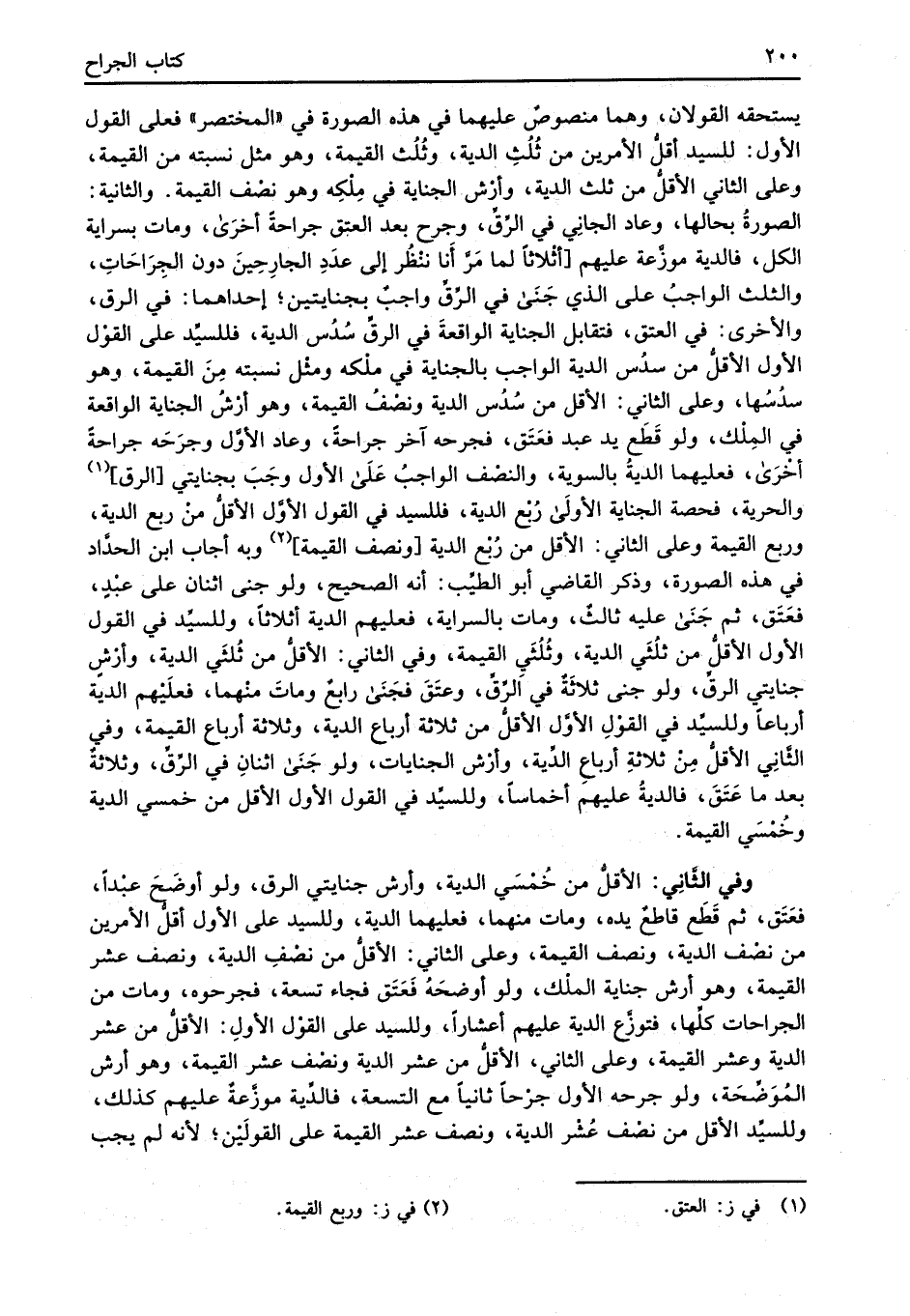 وفي الثَّانِي: الأقلُّ من خُمْسَي الدية، وأرش جنايتي الرق، ولو أوضَحَ عبْداً، فعَتَق، ثم قَطَع قاطعٌ يده، ومات منهما، فعليهما الدية، وللسيد على الأول أقلُّ الأمرين من نصْف الدية، ونصف القيمة، وعلى الثاني: الأقلُّ من نصْفِ الدية، ونصف عشر القيمة، وهو أرش جناية الملْك، ولو أوضحَهُ فَعَتَق فجاء تسعة، فجرحوه، ومات من الجراحات كلِّها، فتوزَّع الدية عليهم أعشاراً، وللسيد على القوْل الأولِ: الأقلُّ من عشر الدية وعشر القيمة، وعلى الثاني، الأقلُّ من عشر الدية ونصْف عشر القيمة، وهو أرش المُوَضِّحَة، ولو جرحه الأول جرْحاً ثانياً مع التسعة، فالدِّية موزَّعةٌ عليهم كذلك، وللسيِّد الأقل من نصْف عُشر الدية، ونصف عشر القيمة على القولَيْن؛ لأنه لم يجب
