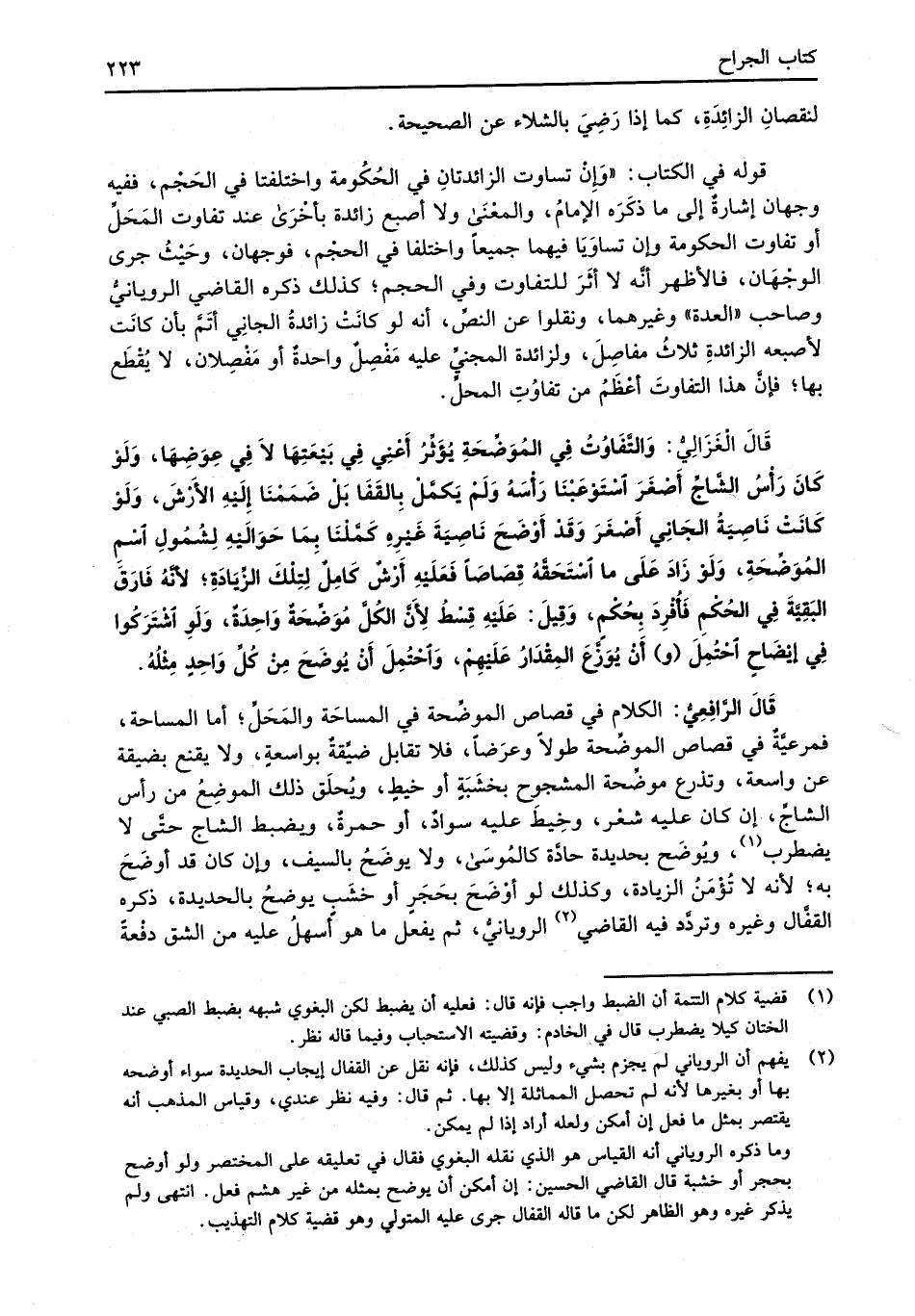 (¬2) يفهم أن الروياني لم يجزم بشيء وليس كذلك، فإنه نقل عن القفال إيجاب الحديدة سواء أوضحه بها أو بغيرها لأنه لم تحصل المماثلة إلا بها. ثم قال: وفيه نظر عندي، وقياس المذهب أنه يقتصر بمثل ما فعل إن أمكن ولعله أراد إذا لم يمكن.