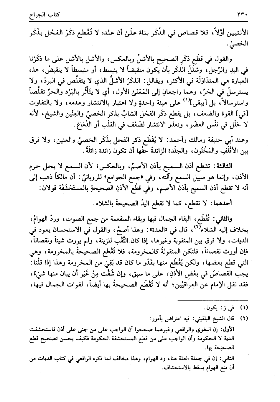 وعند أبي حنيفة ومالك وأحمد: لا يُقْطَع ذكر الفحل بذَكَر الخصيِّ والعنين، ولا فرق بين الأقْلَفِ والمَخْتُون، والجلْدة الزائدةُ حقُّها أن تكون زائدة زائلَةً.