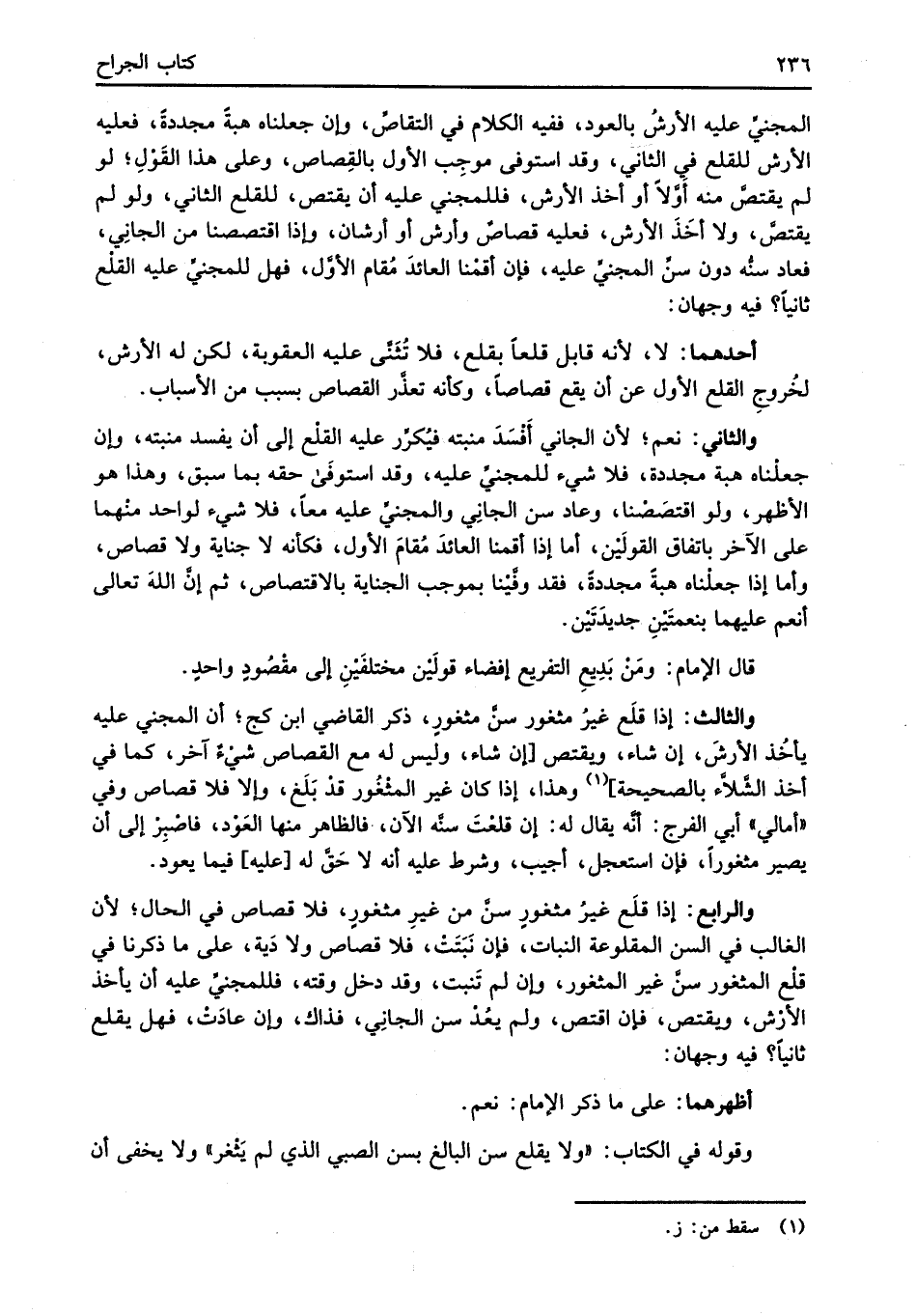 وقوله في الكتاب: "ولا يقلع سن البالغ بسن الصبي الذي لم يَثْغر" ولا يخفى أن