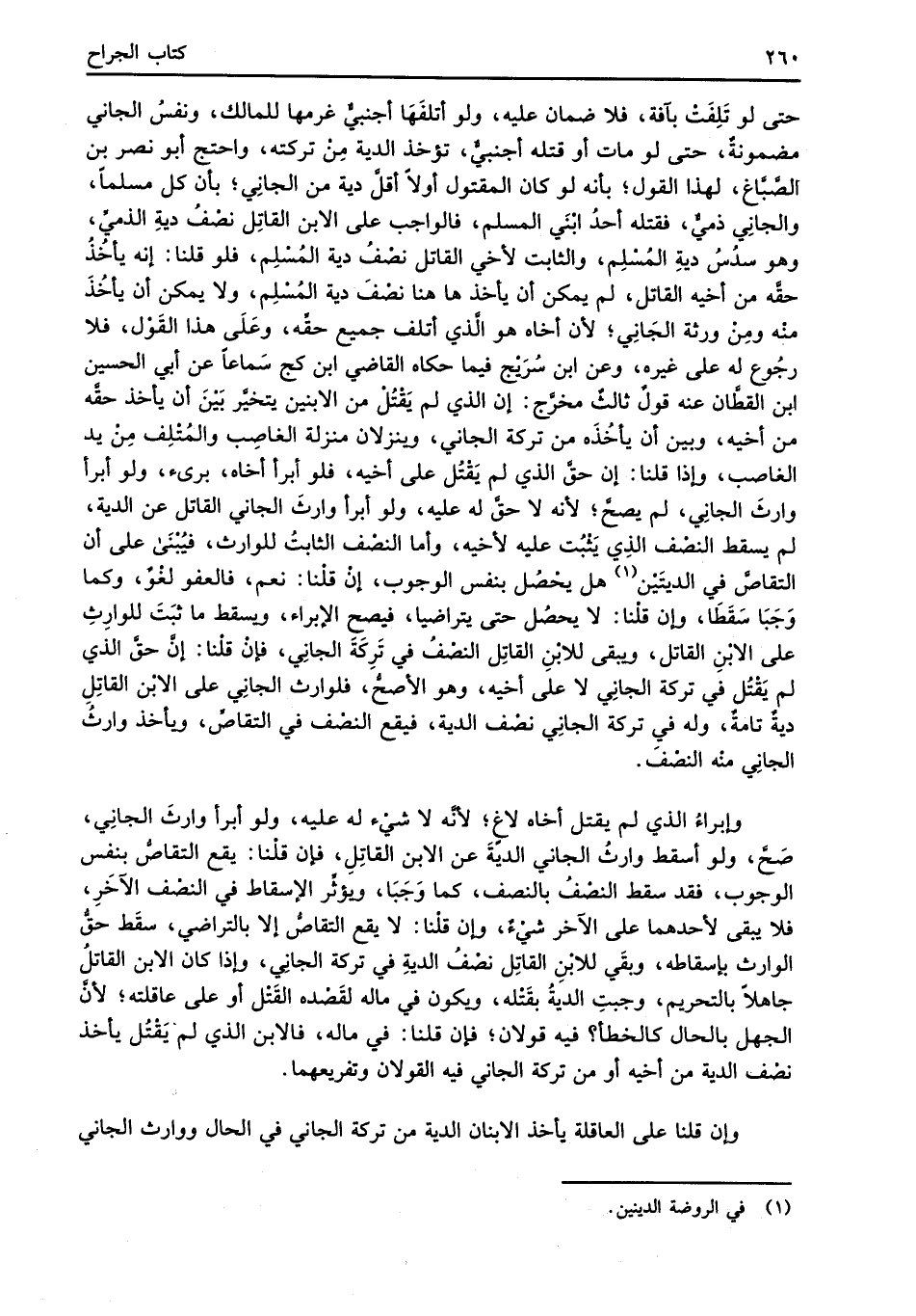 وإبراءُ الذي لم يقتل أخاه لاغٍ؛ لأنَّه لا شيْء له عليه، ولو أبرأ وارثَ الجانِي، صَحَّ، ولو أسقط وارثُ الجاني الديةَ عن الابن القاتِلِ، فإن قلْنا: يقع التقاصُّ بنفس الوجوب، فقد سقط النصْفُ بالنصف، كما وَجَبَا، ويؤثِّر الإسقاط في النصْف الآخَرِ، فلا يبقى لأحدهما على الآخر شيْءٌ، وإن قلْنا: لا يقع التقاصُّ إلا بالتراضي، سقَط حقُّ الوارث بإسقاطه، وبقَي للابْنِ القاتِل نصْفُ الديةِ في تركة الجاني، وإذا كان الابن القاتلُ جاهلاً بالتحريم، وجبتِ الديةُ بقَتْله، ويكون في ماله لقَصْده القَتْل أو على عاقلته؛ لأنَّ الجهل بالحال كالخطأ؟ فيه قولان؛ فإن قلنا: في ماله، فالابن الذي لم يَقْتُل يأخذ نصْف الدية من أخيه أو من تركة الجاني فيه القولان وتفريعهما.