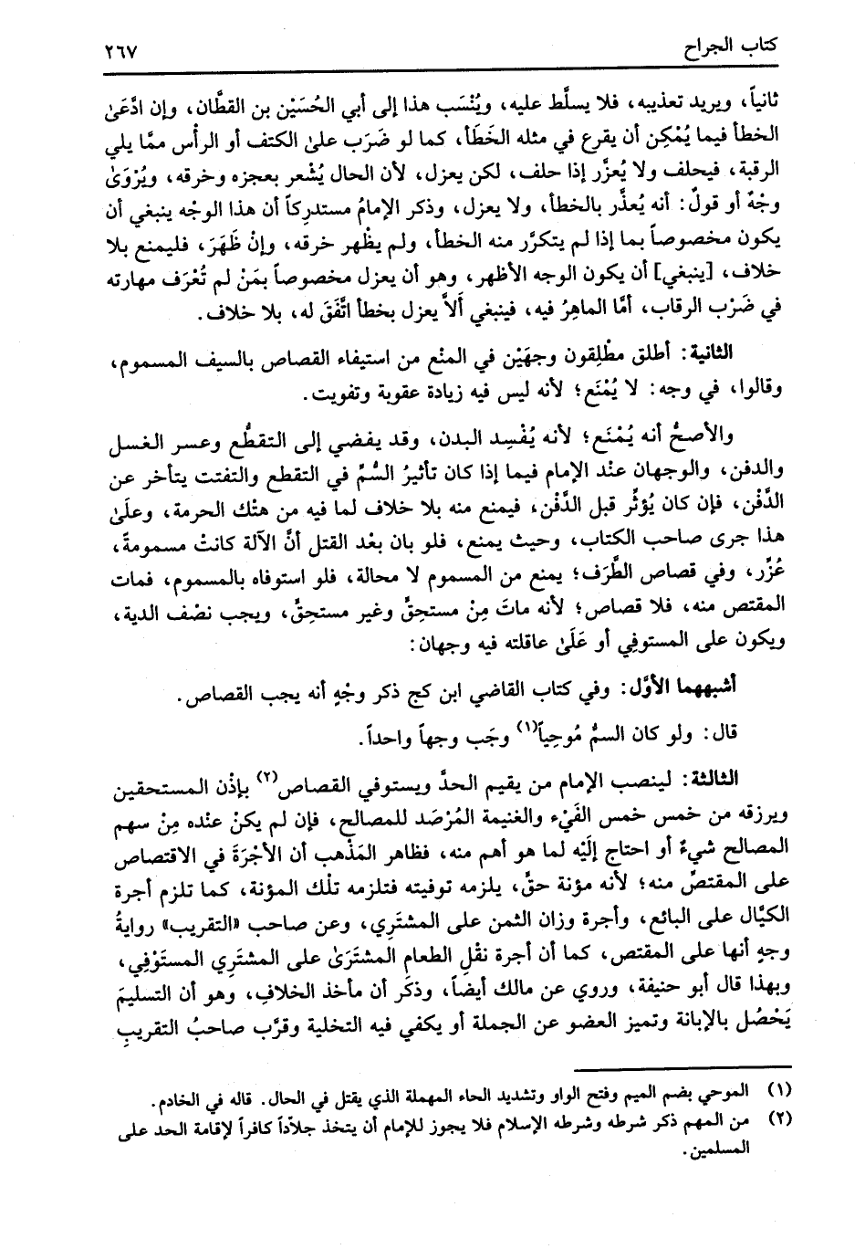 الثانية: أطلق مطْلِقون وجهَيْن في المنْع من استيفاء القصاص بالسيف المسموم، وقالوا، في وجه: لا يُمْنَع؛ لأنه ليس فيه زيادة عقوبة وتفويت.
