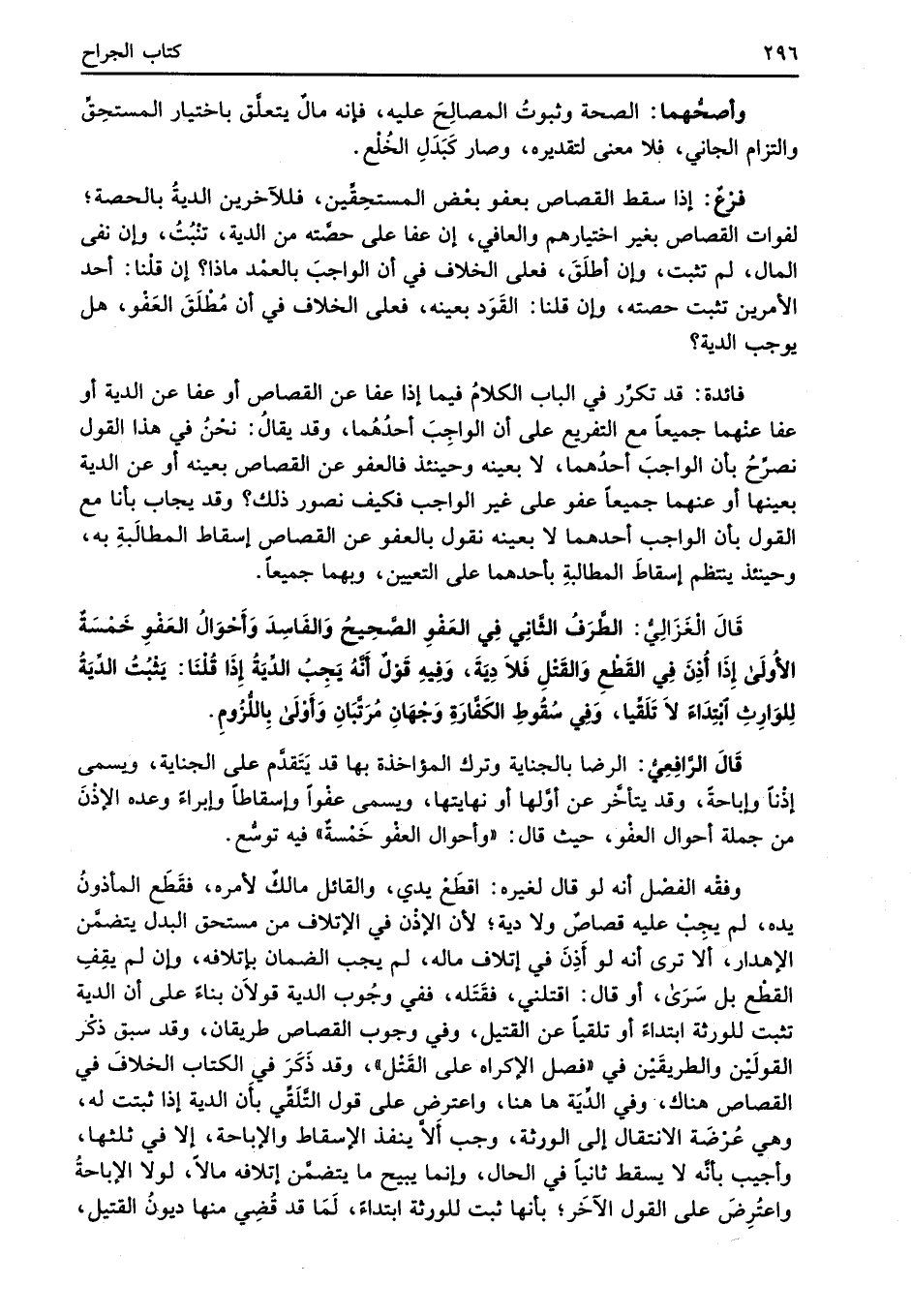 فائدة: قد تكرّر في الباب الكلامُ فيما إذا عفا عن القصاص أو عفا عن الدية أو عفا عنْهما جميعاً مع التفريع على أن الواجِبَ أحدُهُما، وقد يقالُ: نحْنُ في هذا القول نصرِّحُ بأن الواجبَ أحدُهما، لا بعينه وحينئذ فالعفو عن القصاص بعينه أو عن الدية بعينها أو عنهما جميعاً عفو على غير الواجب فكيف نصور ذلك؟ وقد يجاب بأنا مع القول بأن الواجب أحدهما لا بعينه نقول بالعفو عن القصاص إسقاط المطالَبةِ به، وحينئذ ينتظم إسقاطَ المطالبةِ بأحدهما على التعيين، وبهما جميعاً.