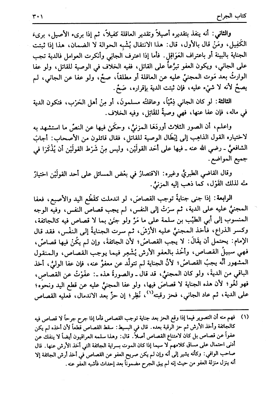 (¬1) فهم منه أن التصوير فيما إذا وقع الحز بعد جناية توجب القصاص فأما إذا جرح جرحاً لا قصاص فيه كالجائفة وأخذ الأرش ثم حز الرقبة بعده. قال في البسيط: سقط القصاص قطعاً لأن أخذه لم يكن عفواً عن قصاص بل كان لامتناع القصاص أصلاً. قال: وهذا سلمه العراقيون أيضاً لا ينفك عن أدنى احتمال على مساق كلامهم لا سيما إذا كان الموت بسراية الجائفة التي أخذ الأرش عنها. قال صاحب الوافي: وكأنه يشعر إلى أنَّه وإن لم يكن صريح العفو عن القصاص في أخذ أرش الجائفة إلا أنَّه ينزل منزلة العفو من حيث إنه لم يبق الجرح مضموناً بعد إحداث فأشبه العفو عنه.