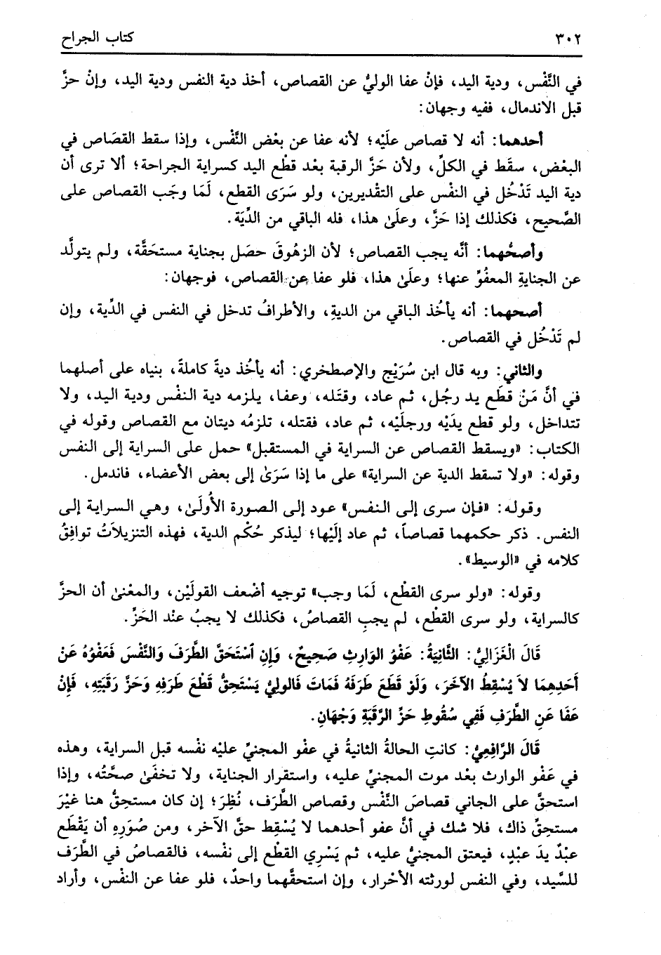 قَالَ الْغَزَالِيُّ: الثَّانِيَةُ: عَفْوُ الوَارِثِ صَحِيحٌ، وَإنِ اسْتَحَقَّ الطَّرَفَ وَالنَّفْسَ فَعَفْوُهُ عَنْ أَحَدِهِمَا لاَ يُسْقِط الآخَرَ، وَلَوْ قَطَعَ طَرَفَهُ فَمَاتَ فَالولِيُّ يَسْتحِقُّ قَطْعَ طَرَفِهِ وَحَزَّ رَقَبَتِهِ، فَإِنْ عَفَا عَنِ الطَّرَفِ فَفِي سقُوطِ حَزِّ الرَّقبةِ وَجْهَانِ.