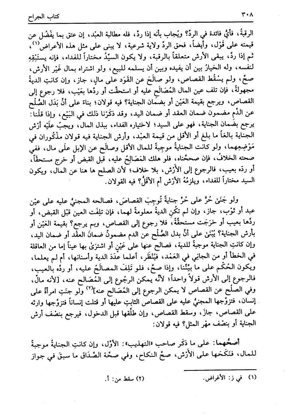 ولو جَنَى حُرٌّ على حُرٍّ جنايةً تُوجِبَ القصاصَ، فصالحه المجنيُّ عليه على عيْن عبد أو ثوْب، جاز، وإن لم تكُنِ الديةُ معلومةً لهما، فإن تلِفَت العين قبْل القبض، أو ردَّها بعيب أو خرَجَت مستحقَّةً، فلا رجوع إلى القصاص، وبم يرجع؟ بقيمة العَيْن أو بأرش الجناية؟ يُبْنَى على أن بدل الصُّلْح عن الدم مضمونٌ ضمانَ العقْد أو ضمان اليد، وإن كانتِ الجناية موجبةً للدية، فصالح عنها على عَيْنٍ أو اشترَى بها عيناً إما من العاقلة في الخطأ أو من الجانِي في العَمْد، فيُنْظَر، أعلما عدَدَ الدية وأسنانها، أم لم يعلما، ويكون الحُكْم على ما بيَّنَّنا، وإذا صحَّ، فلو تَلِفَ المصالَحُ عليه، أو ردَّه بالعيب، فالرجوع إلى الأرش قولاً واحداً؛ لأنَّه يمكن الرجُوع إلى المُصَالح عنه، [لأنه مالٌ، وفي الصلْح عن القصاص لا يمكن الرجوع إلى المُصَالح عنه] (¬2) ولو جنَتِ امرأةٌ على إنسان، فتزوَّجها المجنيُّ عليه على القصاص الثابتِ عليها أو قتلت إنساناً فتزوَّجها وارثه على القصاص، جازَ، وسقط القصاص، وإن طلَّقها قبل الدخول، فيرجع بنصْف أرش الجناية أو بنصْف مهْر المثل؟ فيه قولان: