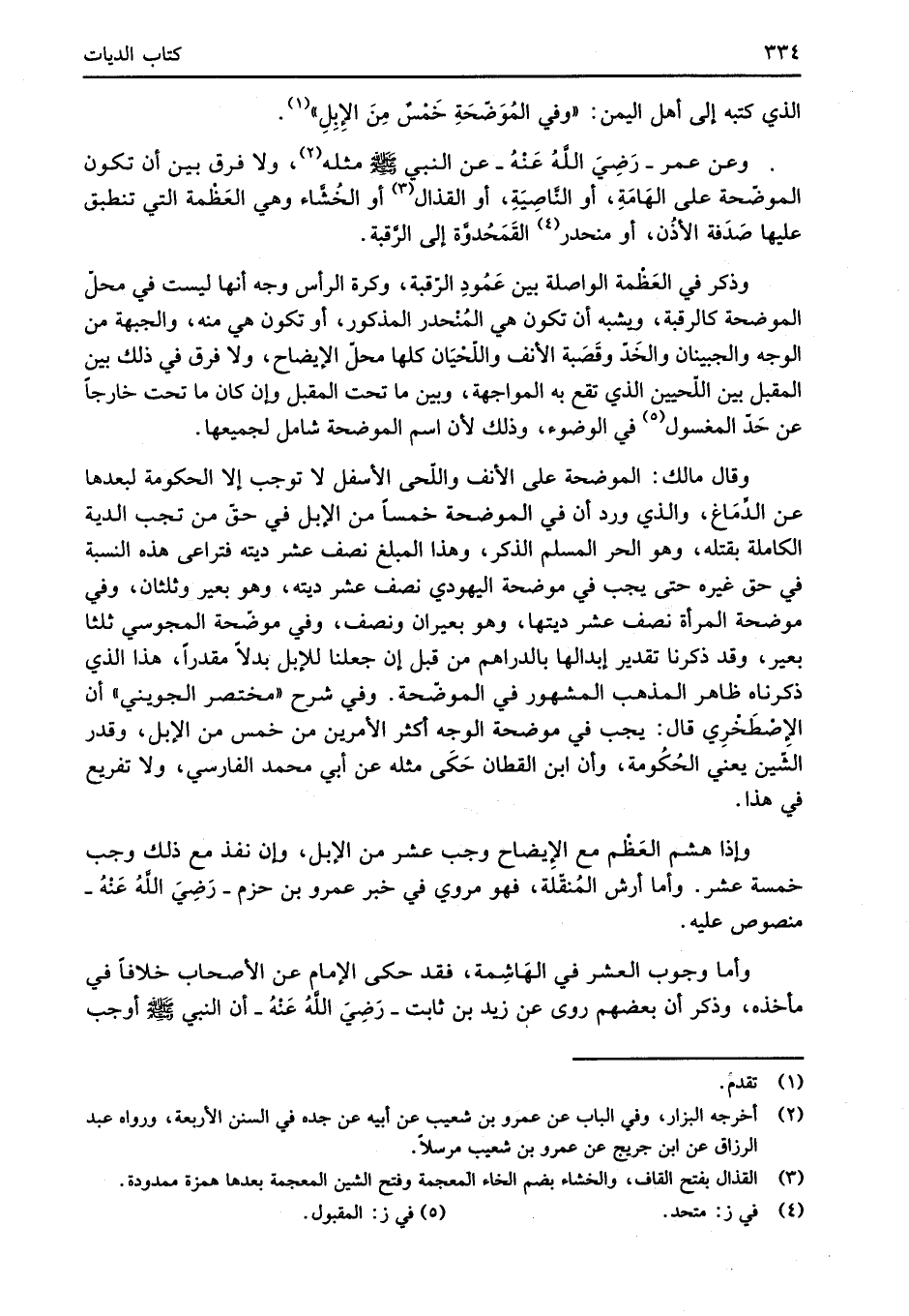 الذي كتبه إلى أهل اليمن:"وفي المُوَضّحَةِ خَمْسٌ مِنَ الإِبِلِ" (¬1).