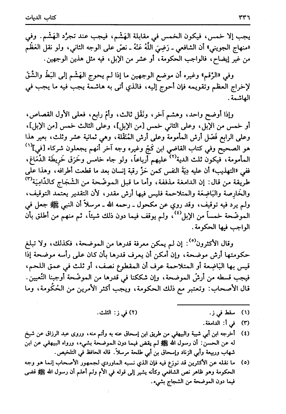 (¬5) ما نقله عن الأكثرين قد نوزع فيه فإن الذي نسبه الماوردي لجمهور الأصحاب إنما هو وجه الحكومة وهو ظاهر نص الشَّافعي وكأنه يشير إلى قوله في الأم ولم أعلم أن رسول الله -صلى الله عليه وسلم- قضى فيما دون الموضحة من الشجاج بشيء.