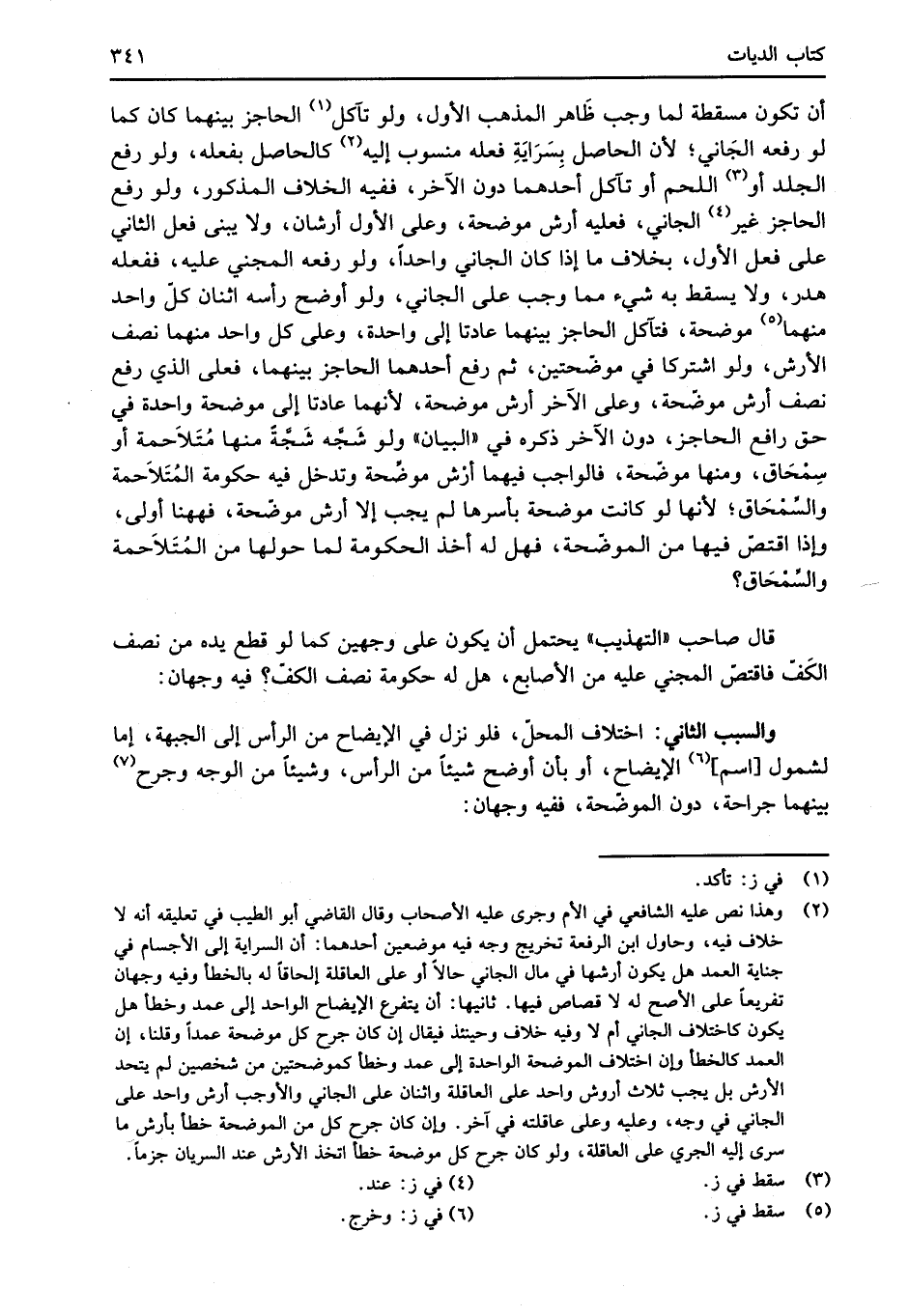 أن تكون مسقطة لما وجب ظَاهر المذهب الأول، ولو تآكل (¬1) الحاجز بينهما كان كما لو رفعه الجَاني؛ لأن الحاصل بِسَرَايَةِ فعله منسوب إليه (¬2) كالحاصل بفعله، ولو رفع الجلد أو (¬3) اللحم أو تآكل أحدهما دون الآخر، ففيه الخلاف المذكور، ولو رفع الحاجز غير (¬4) الجاني، فعليه أرش موضحة، وعلى الأول أرشان، ولا يبنى فعل الثاني على فعل الأول، بخلاف ما إذا كان الجاني واحداً، ولو رفعه المجني عليه، ففعله هدر، ولا يسقط به شيء مما وجب على الجاني، ولو أوضح رأسه اثنان كلّ واحد منهما موضحة، فتآكل الحاجز بينهما عادتا إلى واحدة، وعلى كل واحد منهما نصف الأرش، ولو اشتركا في موضّحتين، ثم رفع أحدهما الحاجز بينهما، فعلى الذي رفع نصف أرش موضّحة، وعلى الآخر أرش موضحة؛ لأنهما عادتا إلى موضحة واحدة في حق رافع الحاجز، دون الآخر ذكره في "البيان" ولو شَجَّه شَجَّةً منها مُتَلاَحمة أو سِمْحَاق، ومنها موضحة، فالواجب فيهما أرْش موضِّحة وتدخل فيه حكومة المُتَلاَحمة والسِّمْحَاق؛ لأنها لو كانت موضحة بأسرها لم يجب إلا أرش موضّحة، فههنا أولى، وإذا اقتصّ فيها من الموضحة، فهل له أخذ الحكومة لما حولها من المُتَلاَحمة والسِّمْحَاق؟