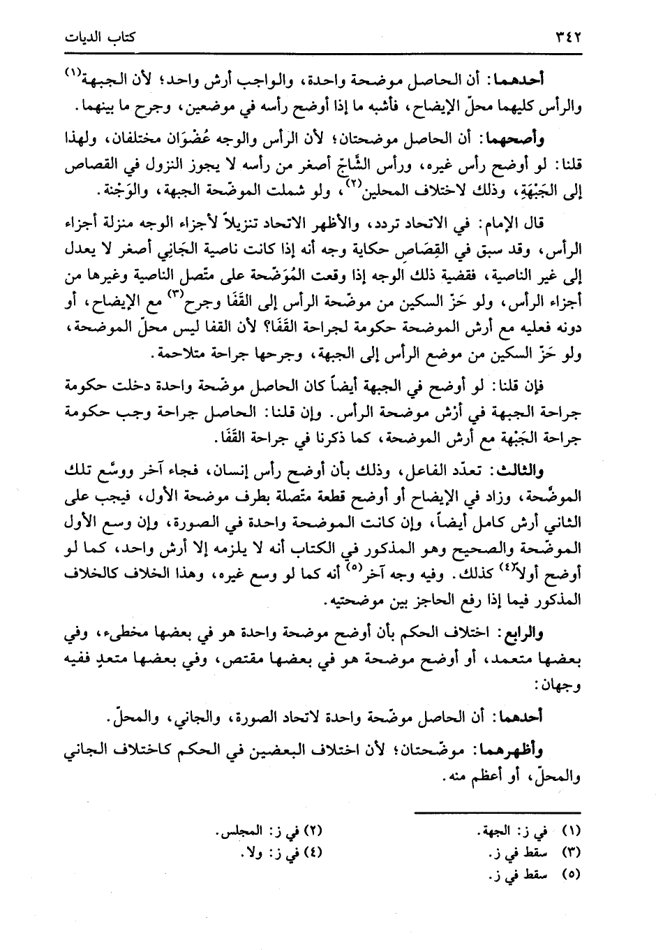 والرابع: اختلاف الحكم بأن أوضح موضحة واحدة هو في بعضها مخطئ، وفي بعضها متعمد، أو أوضح موضحة هو في بعضها مقتص، وفي بعضها متعدٍ ففيه وجهان: