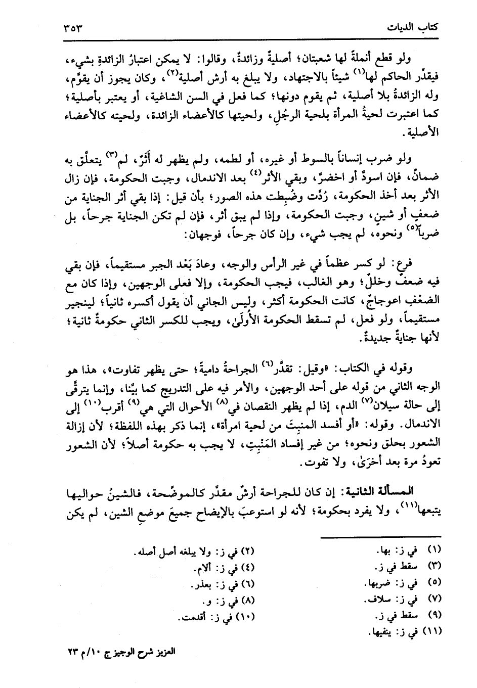 المسألة الثانية: إن كان للجراحة أرشٌ مقدَّر كالموضحة، فالشينُ حواليها يتبعها (¬11)، ولا يفرد بحكومة؛ لأنه لو استوعبَ بالإيضاح جميعَ موضعِ الشين، لم يكن