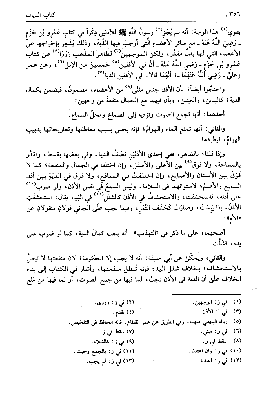 يقوي (¬1) هذا الوجهَ: أنه لم يُجْزِ (¬2) رسولُ اللهِ -صلى الله عليه وسلم- للأذنين ذِكْراً في كتابِ عَمْرِو بْنِ حَزْمٍ -رَضِيَ اللهُ عَنْهُ- مع سائر الأعضاءِ الَّتي أوجبَ فيها الدِّيَةَ، وذلك يُشْعِر بإخراجها عن الأعضاء التي لها بدلٌ مقدَّر، ولكن الموجهين (¬3) لظاهر المذهب رَوَوْا (¬4) عن كتاب عَمْرِو بْنِ حَزْمٍ -رَضِيَ اللهُ عَنْهُ- أنَّ في الأذنين (¬5) خمسِينَ من الإبل (¬6)، وعن عمر وعليٍّ -رَضِيَ اللهُ عَنْهُمَا-؛ أنَّهُمَا قالا: في الأذنين الدية (¬7).