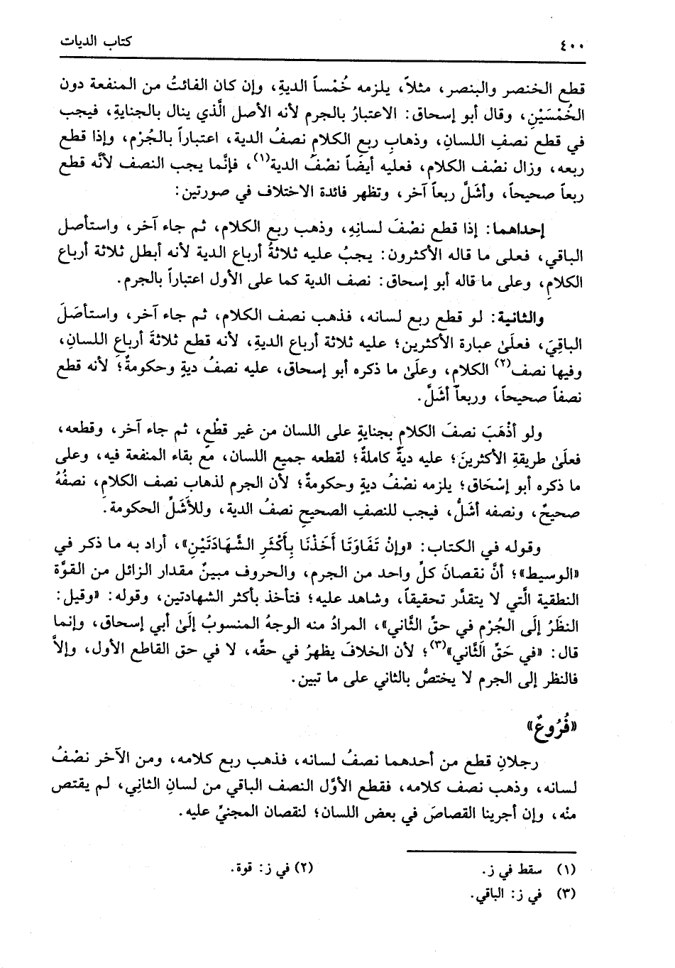 " فُرُوعٌ"