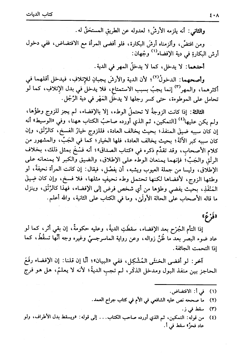 آخر: لو أفضى الخنثَى المُشْكِل، ففي "البيان"؛ أنَّا إن قلنا: إن الإفضاء رفَعَ الحاجز بين منفذ البول ومدخل الذكَر، لم تجبِ الديةُ؛ لأنه لا يعلمُ، هل هو فرج
