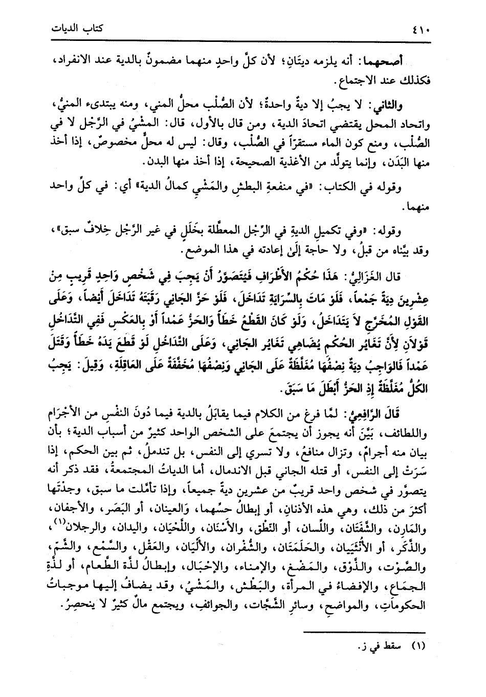وقوله: "وفي تكميلِ الديةِ في الرِّجْل المعطَّلة بخَلَلٍ في غير الرَّجْل خِلافٌ سبق"، وقد بيَّناه من قبلُ، ولا حاجة إلَى إعادته في هذا الموضع.