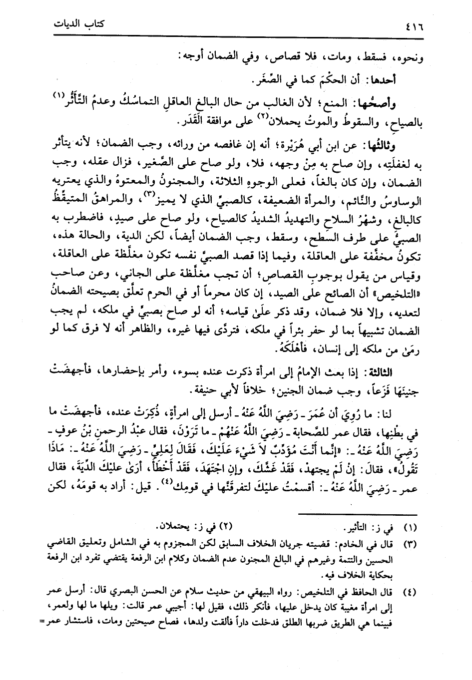 (¬3) قال في الخادم: قضيته جريان الخلاف السابق لكن المجزوم به في الشامل وتعليق القاضي الحسين والتتمة وغيرهم في البالغ المجنون عدم الضمان وكلام ابن الرفعة يقتضي تفرد ابن الرفعة بحكاية الخلاف فيه.