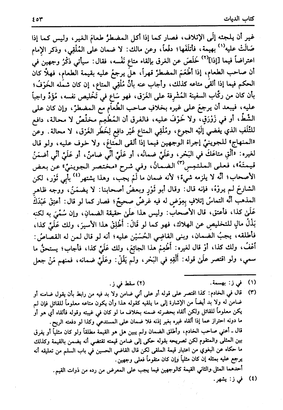 قال -أعني صاحب الخادم، وأطلق الضمان ولم يبين هل هو القيمة مطلقاً ولو كان مثلياً أو يفرق بين المثلى والمتقوم لكن تصريحه بقوله حكى إلى ضامن قيمته تقتضي أنَّه يضمن بالقيمة وكذلك ما حكاه عن البغوي من اعتبار قيمة الملقى لكن قال القاضي الحسين في باب السلم من تعليقه أنَّه يرجع عليه بمثله إن كان مثلياً وإن وإن متقوماً فعلى وجهين.