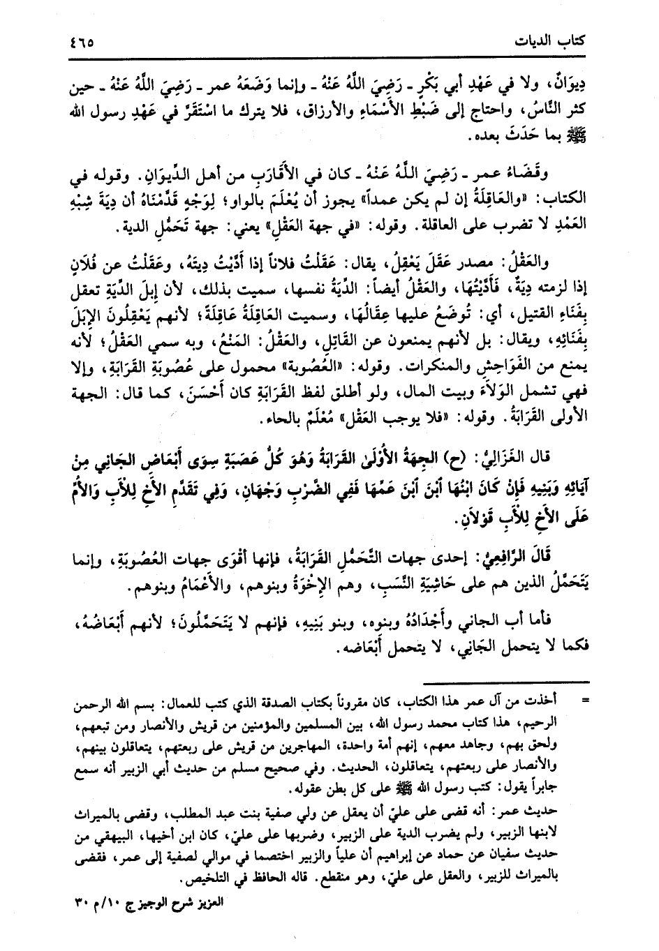 وقَضَاءُ عمر -رَضِيَ اللهُ عَنْهُ- كان في الأَقَارَب من أهل الدِّيوَانِ. وقوله في الكتاب: "والعَاقِلَةُ إن لم يكن عمداً" يجوز أن يُعْلَمَ بالواو؛ لِوَجْهِ قَدَّمْنَاهُ أن دِيَةَ شِبْهِ العَمْدِ لا تضرب على العاقلة. وقوله: "في جهة العَقْلِ" يعني: جهة تَحَمُّل الدية.