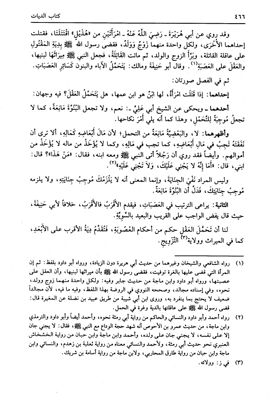 وقد روي عن أبي هُرَيْرَةَ -رَضِيَ الله عَنْه- امْرَأَتَيْنِ من "هُذَيْلِ" اقْتَتَلَتَا، فقتلت إحداهما الأُخْرَى، ولكل واحدة منهما زَوْجٌ وَوَلَدٌ، فقضى رسول الله -صلى الله عليه وسلم- بِدِيَةِ المَقْتُولِ على عاقلة القاتلة، وبَرَّأَ الزوج والولد، ثم ماتت القَاتِلَةُ، فجعل النبي -صلى الله عليه وسلم- مِيرَاثَهَا لبنيها، والعَقْلَ على العَصَبَةِ (¬1). وقال أبو حَنِيْفَةَ ومالك: يَتَحَمَّلُ الآباء والبنون كَسَائِرِ العَصَبَاتِ.