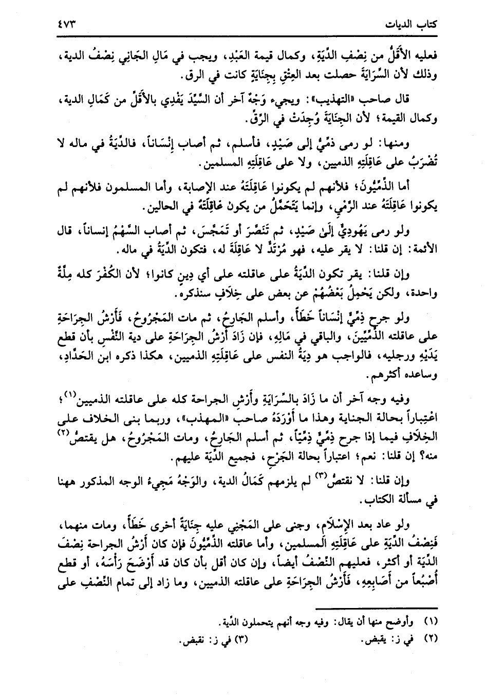 ولو جرح ذِمِّيٌّ إنساناً خَطَأً، وأسلم الجَارحُ، ثم مات المَجْرُوحُ، فَأَرْشُ الجِرَاحَةِ على عاقلته الذِّمِّيِّينَ، والباقي في مَالِهِ، فإن زَادَ أرْشُ الجِرَاحَةِ على دية النَّفْسِ بأن قطع يَدَيْه ورجليه، فالواجب هو دِيَةُ النفس على عَاقلَتِهِ الذميين، هكذا ذكره ابن الحَدَّادِ، وساعده أكثرهم.