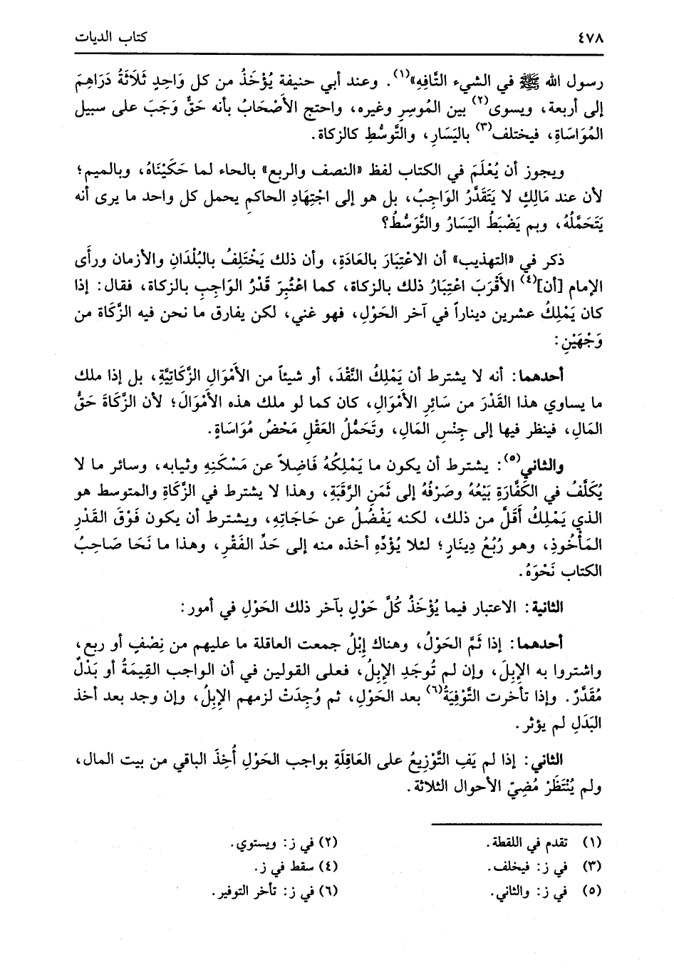 الثانية: الاعتبار فيما يُؤخَذُ كُل حَولٍ بآخر ذلك الحَوْلِ في أمور: