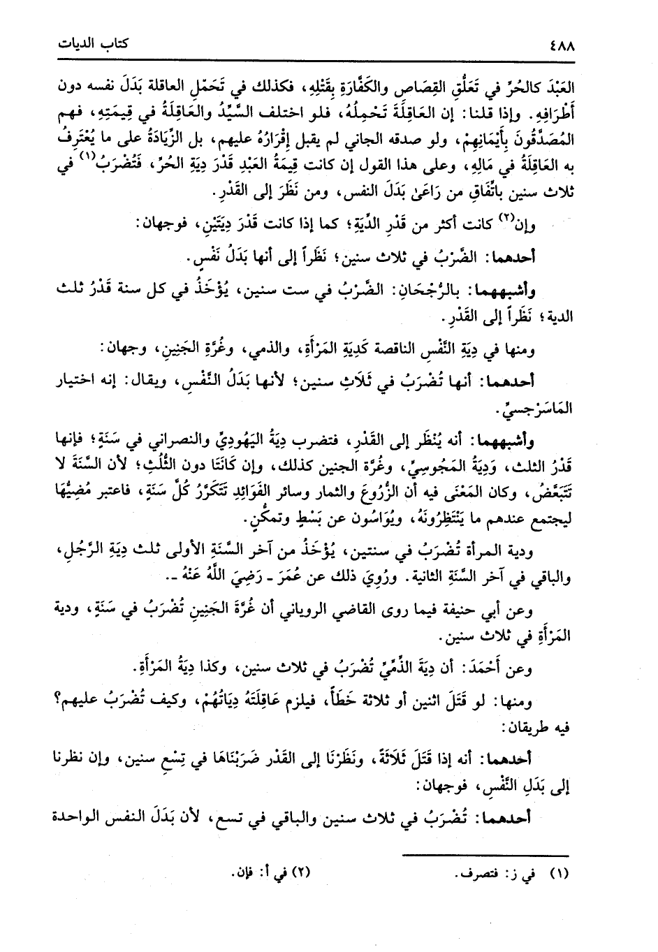 أحدهما: أنها تُضرَبُ في ثَلاَثِ سنين؛ لأنها بَدَلُ النَّفْسِ، ويقال: إنه اختيار المَاسَرْجسيَّ.