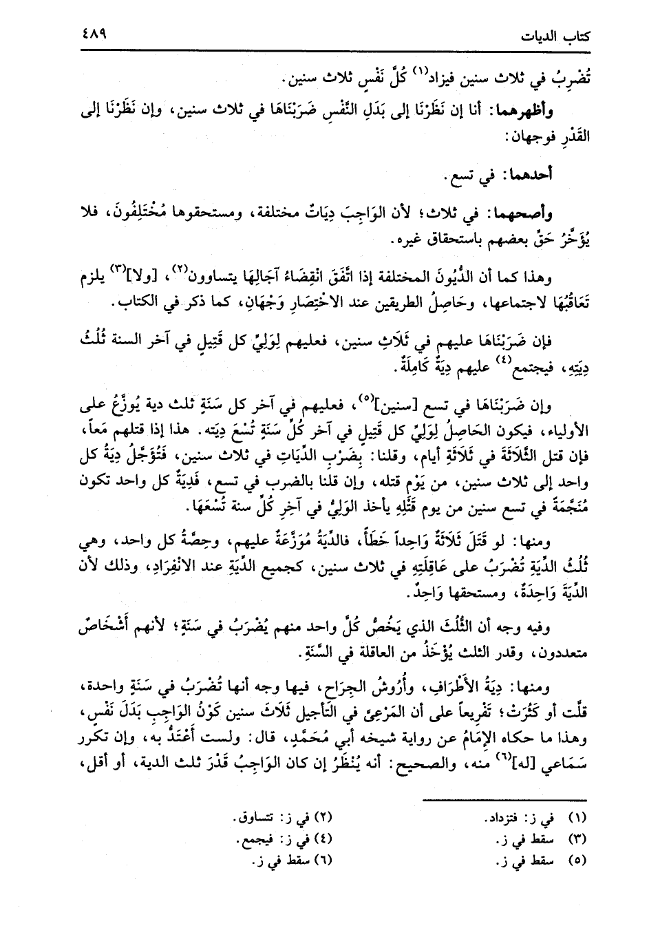 وفيه وجه أن الثُّلُثَ الذي يَخُصُّ كُلَّ واحد منهم يُضْرَبُ في سَنَةٍ؛ لأنهم أَشْخَاصٌ متعددون، وقدر الثلث يُؤْخَذُ من العاقلة في السَّنَةِ.