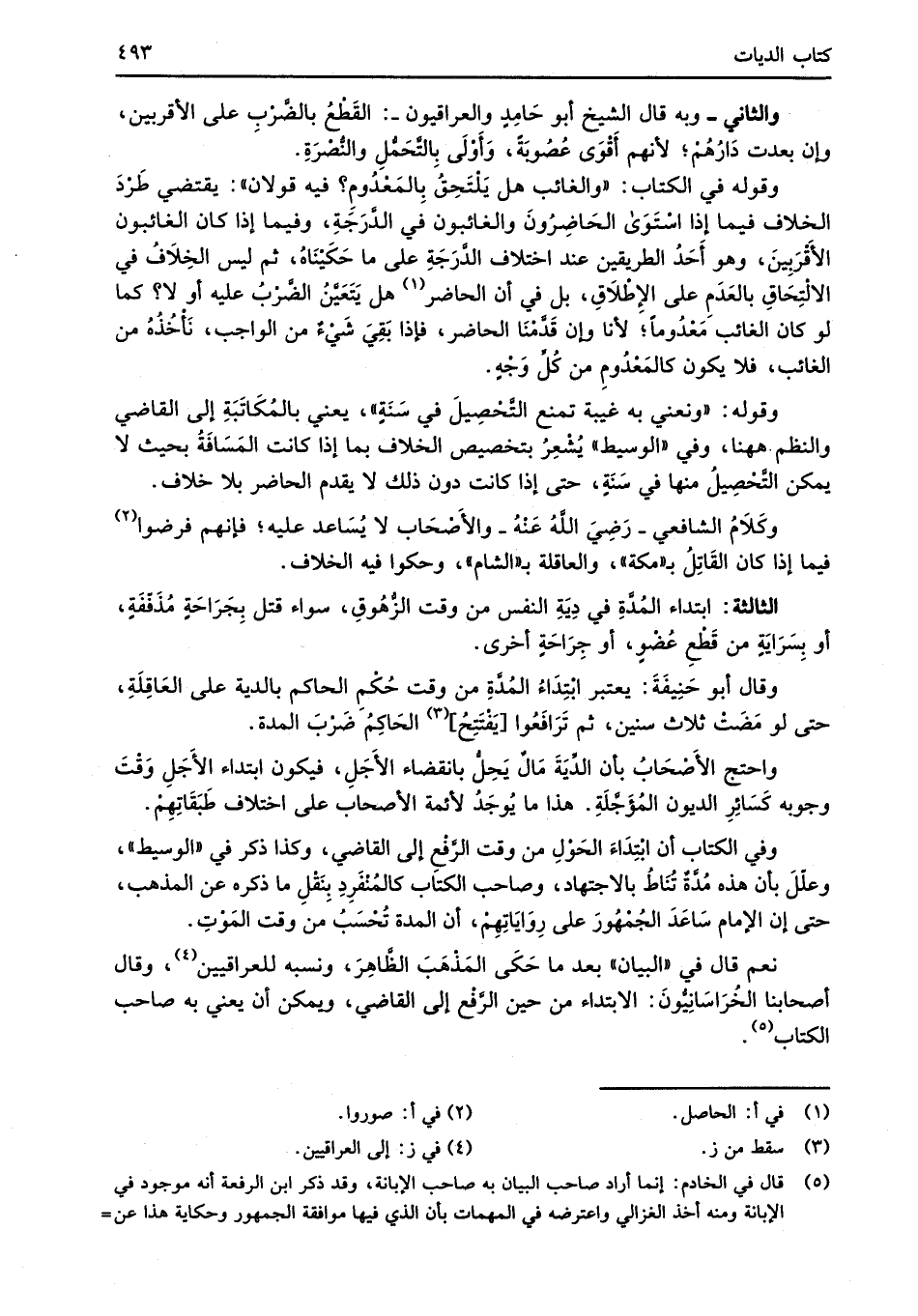 وفي الكتاب أن ابْتِدَاءَ الحَوْلِ من وقت الرَّفْع إلى القاضي، وكذا ذكر في "الوسيط"، وعلّلَ بأن هذه مُدَّةٌ تُنَاط بالاجتهاد، وصاحب الكتَاب كالمُنْفَرِدِ بِنَقْلِ ما ذكره عن المذهب، حتى إن الإِمام سَاعَدَ الجُمْهُورَ على رِوَايَاتِهِمْ، أن المدة تُحْسَبُ من وقت المَوْتِ.
