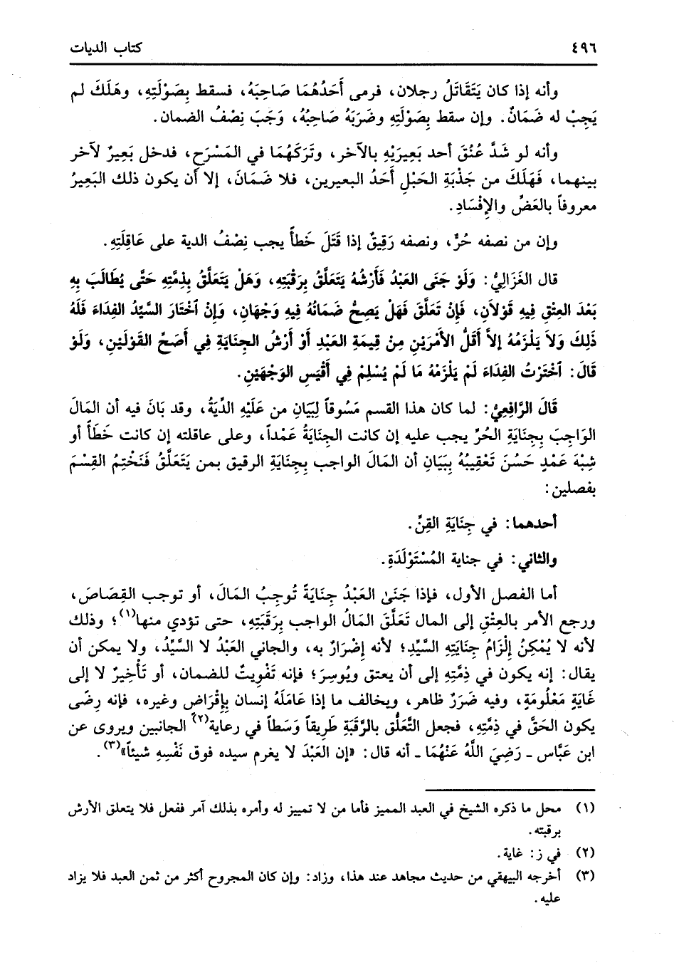 قَالَ الرَّافِعِيُّ: لما كان هذا القسم مَسُوقاً لِبَيَانِ من عَلَيهِ الدِّيَةُ، وقد بَانَ فيه أن المَالَ الوَاجِبَ بِجِنَايَةِ الحُرِّ يجب عليه إن كانت الجِنَايَةُ عَمْداً، وعلى عاقلته إن كانت خَطَأً أو شِبْهَ عَمْدٍ حَسُنَ تعْقِيبُهُ بِبَيَانِ أن المَالَ الواجب بِجِنَايَةِ الرقيق بمن يَتَعلَّقُ فَنَخْتِمُ القِسْمَ بفصلين: