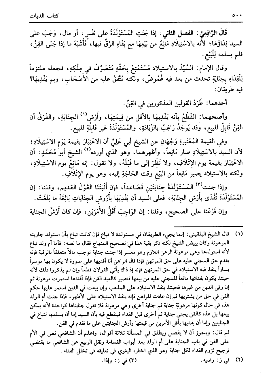 ثم قال: ويجوز أن لا يفصل ويطلق في المسألة ثلاثة أقوال، واعلم أن الشَّافعي نص في الأم على القن في باب الجناية على أم الولد بعد أبواب القسامة ونقل الربيع عن الشَّافعي ما يقتضي ترجيح لزوم الفداء لكل جناية وهو الذي اختاره البغوي في تعليقه في تخلل الفداء.