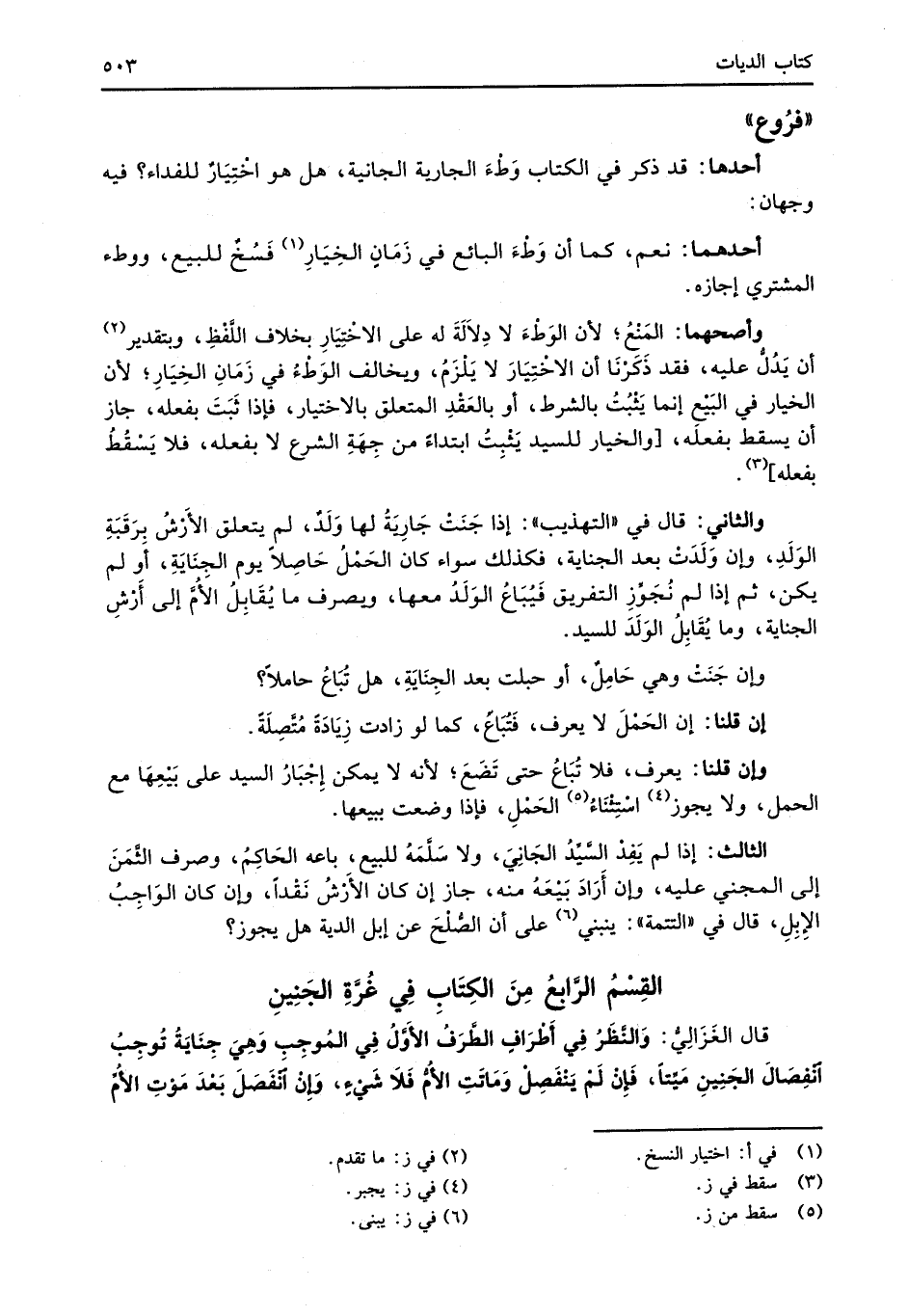 القِسْمُ الرَّابعُ مِنَ الكِتَابِ فِي غُرَّةِ الجَنِينِ