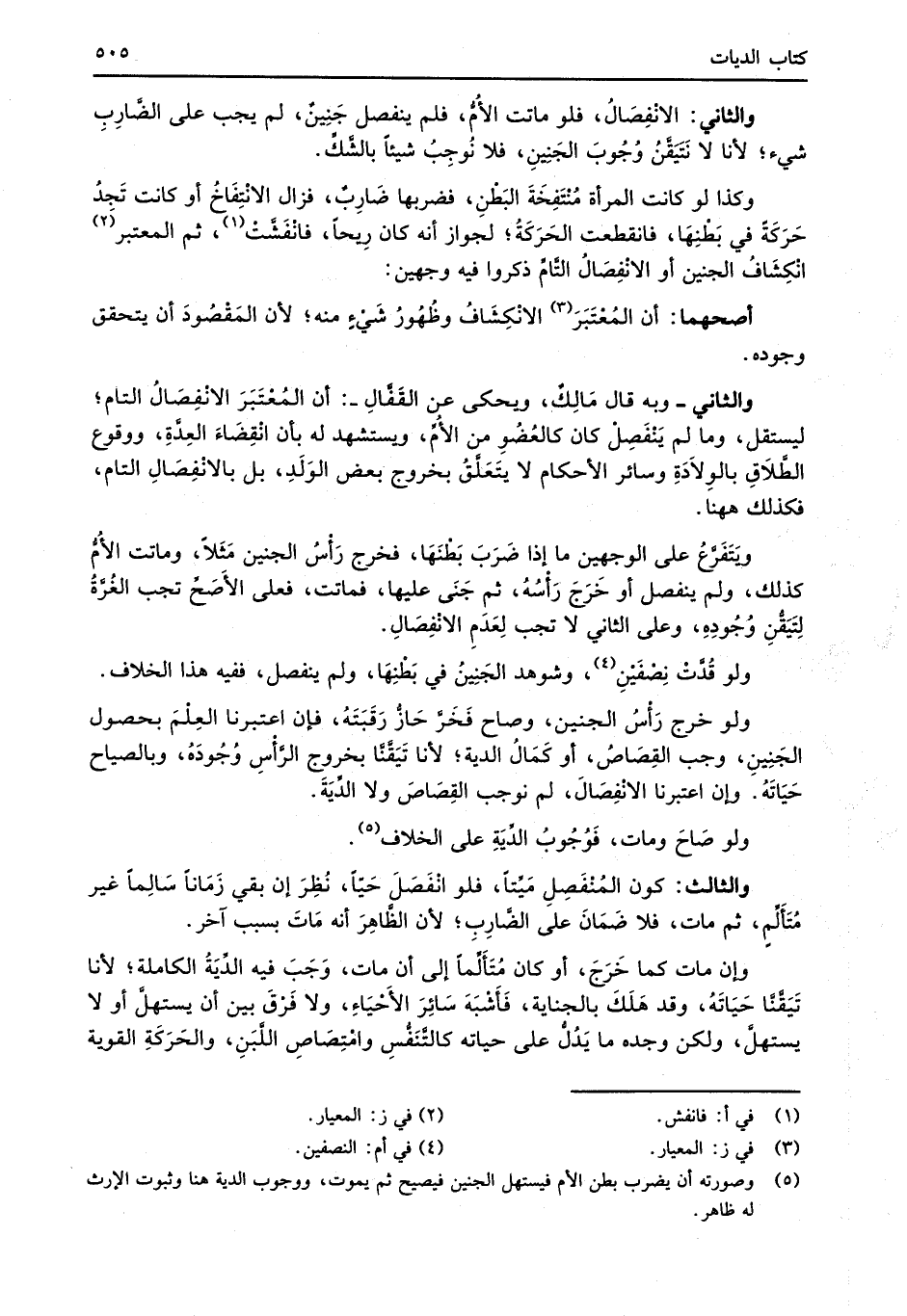 والثاني: الانْفِصَالُ، فلو ماتت الأُمُّ، فلم ينفصل جَنِينٌ، لم يجب على الضَّارِب شيء؛ لأنا لا نَتَيقَّنُ وُجُوبَ الجَنِينِ، فلا نُوجِبُ شيئاً بالشَّكِّ.