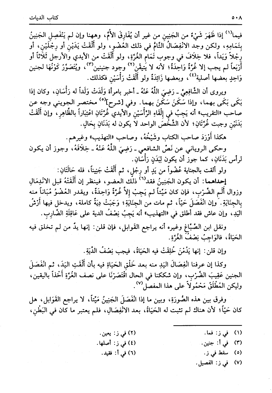 فيما (¬1) إذا ظَهَرَ شَيْءٌ من الجَنِينِ من غير أن يُفَارِقَ الأُمَّ، وههنا وإن لم يَنْفَصِلِ الجَنِينُ بِتَمَامِهِ، ولكن وجد الانْفِصَالُ التَّامُّ في ذلك العُضْوِ، ولو أَلْقَتْ يَدَيْنِ أو رِجْلَيْنِ، أو رِجْلاً وَيَداً، فلا خِلاَفَ في وجوب تَمَامِ الغُرَّةِ، ولو أَلْقَتْ من الأيدي والأرجل ثَلاَثاً أو أرْبَعاً لم يجب إلا غُرَّةٌ وَاحِدَةٌ؛ لأنه لا يتيقّن (¬2) وجود جنينين (¬3)، ويُتَصَوَّرُ كَوْنُهَا لجنين وَاحِدٍ بعضها أصلية (¬4)، وبعضها زَائِدَةٌ ولو أَلْقَتْ رَأْسَيْنِ فكذلك.