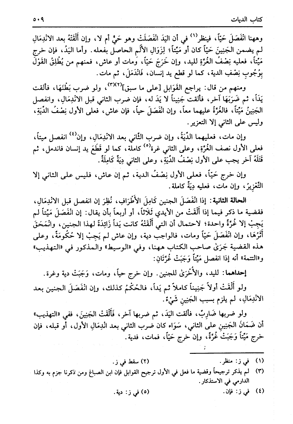 الحالة الثانية: إذا انْفَصَلَ الجنين كَامِلَ الأَطْرَافِ، نُظِرَ إن انفصل قبل الانْدِمَالِ، فقضية ما ذكر فيما إذا أَلْقَتْ من الأيدي ثَلاَثاً، أو أربعاً بأن يقال: إن انْفَصَلَ مَيِّتاً لم يَجِبْ إلا غُرَّةٌ واحدة؛ لاحتمال أن التي أَلْقَتْهُ كانت يَداً زَائِدَةً لهذا الجنين، وانْمَحَقَ أَثَرُهَا، وإن انْفَصَلَ حَيّاً ومات، فالواجب دية، وإن عاش لم يَجِبْ إلا حُكُومَةٌ، وعلى هذه القضية جَرَى صاحب الكتاب هاهنا، وفي "الوسيط" والمذكور في "التهذيب" و"التتمة" أنه إذا انفصل مَيِّتاً وَجَبَتْ غُرَّتَانِ: