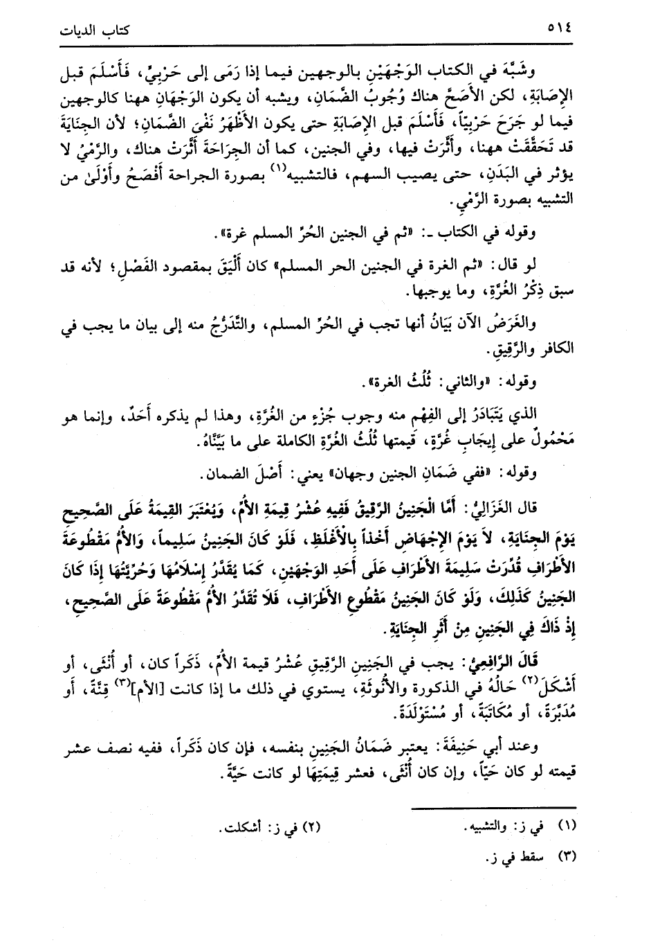لو قال: "ثم الغرة في الجنين الحر المسلم" كان أَلْيَقَ بمقصود الفَصْلِ؛ لأنه قد سبق ذِكْرُ الغُرَّةِ، وما يوجبها.