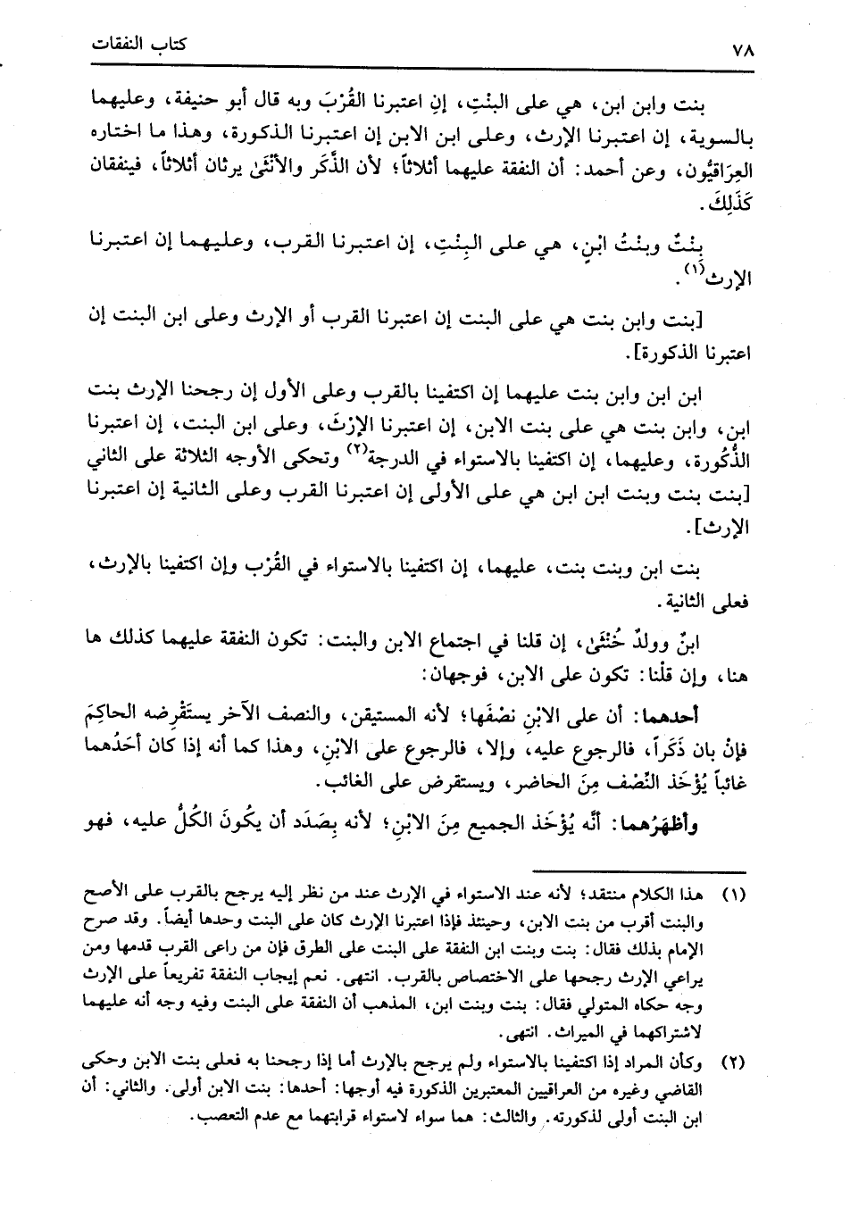 (¬1) هذا الكلام منتقد؛ لأنه عند الاستواء في الإرث عند من نظر إليه يرجح بالقرب على الأصح والبنت أقرب من بنت الابن، وحينئذ فإذا اعتبرنا الإرث كان على البنت وحدها أيضاً. وقد صرح الإِمام بذلك فقال: بنت وبنت ابن النفقة على البنت على الطرق فإن من راعى القرب قدمها ومن يراعي الإرث رجحها على الاختصاص بالقرب. انتهى. نعم إيجاب النفقة تفريعاً على الإرث وجه حكاه المتولي فقال: بنت وبنت ابن، المذهب أن النفقة على البنت وفيه وجه أنه عليهما لاشتراكهما في الميراث. انتهى.