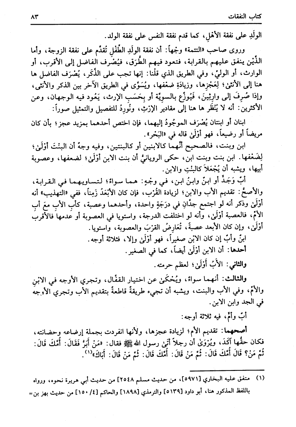 الولَدِ على نفقة الأهْلِ، كما قدم نفقة النفس على نفقة الولد.