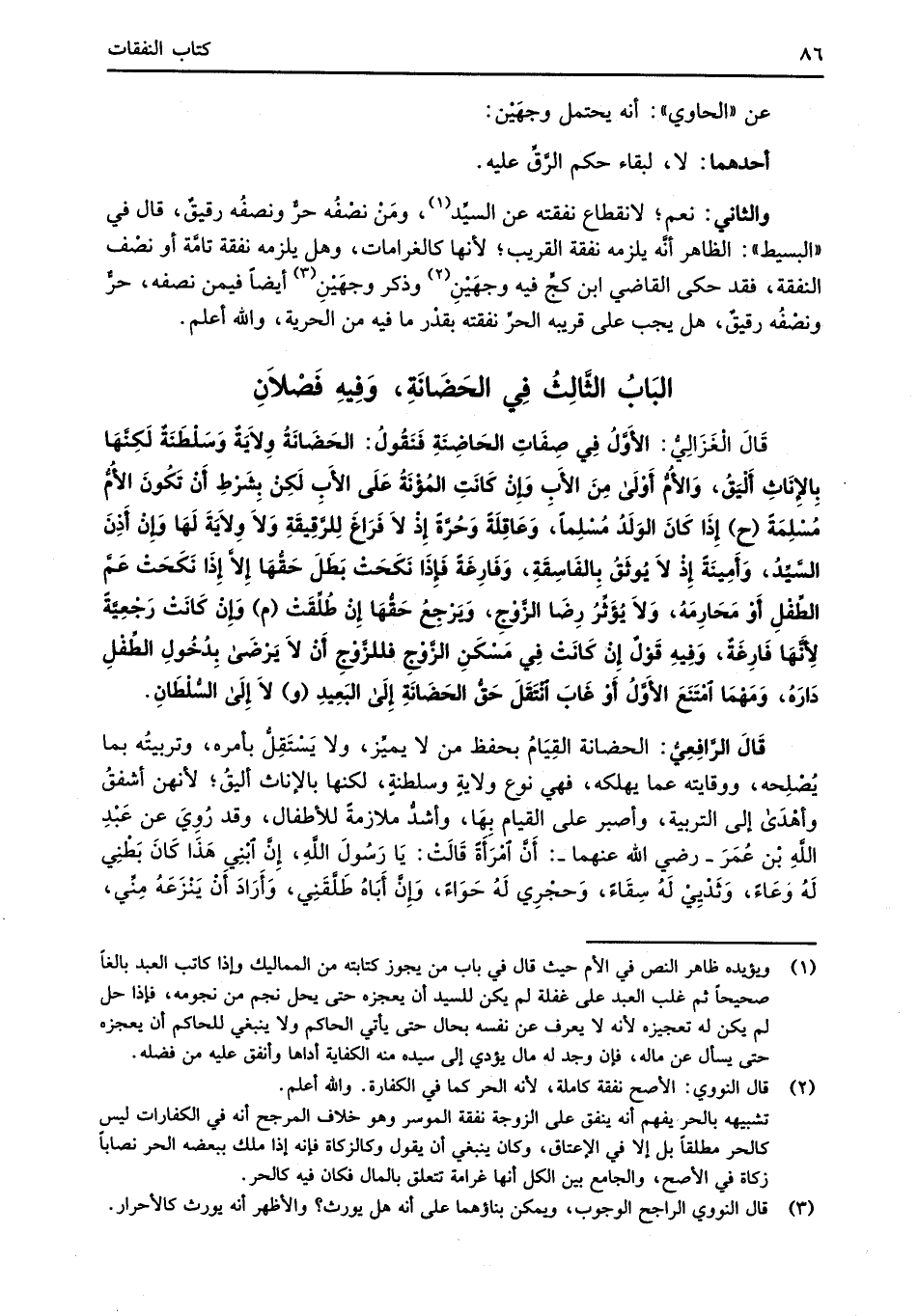 البَابُ الثَّالِثُ فِي الحَضَانَةِ، وَفِيهِ فَصْلاَنِ
