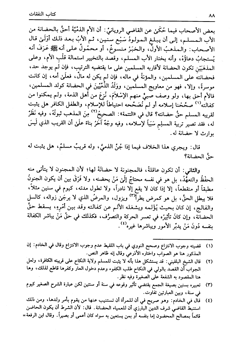 قال: ويجري هذا الخلاف فيما إذا جُنَّ الذميُّ، وله قريبٌ مسلمٌ، هل يثبت له حقُّ الحضانة؟