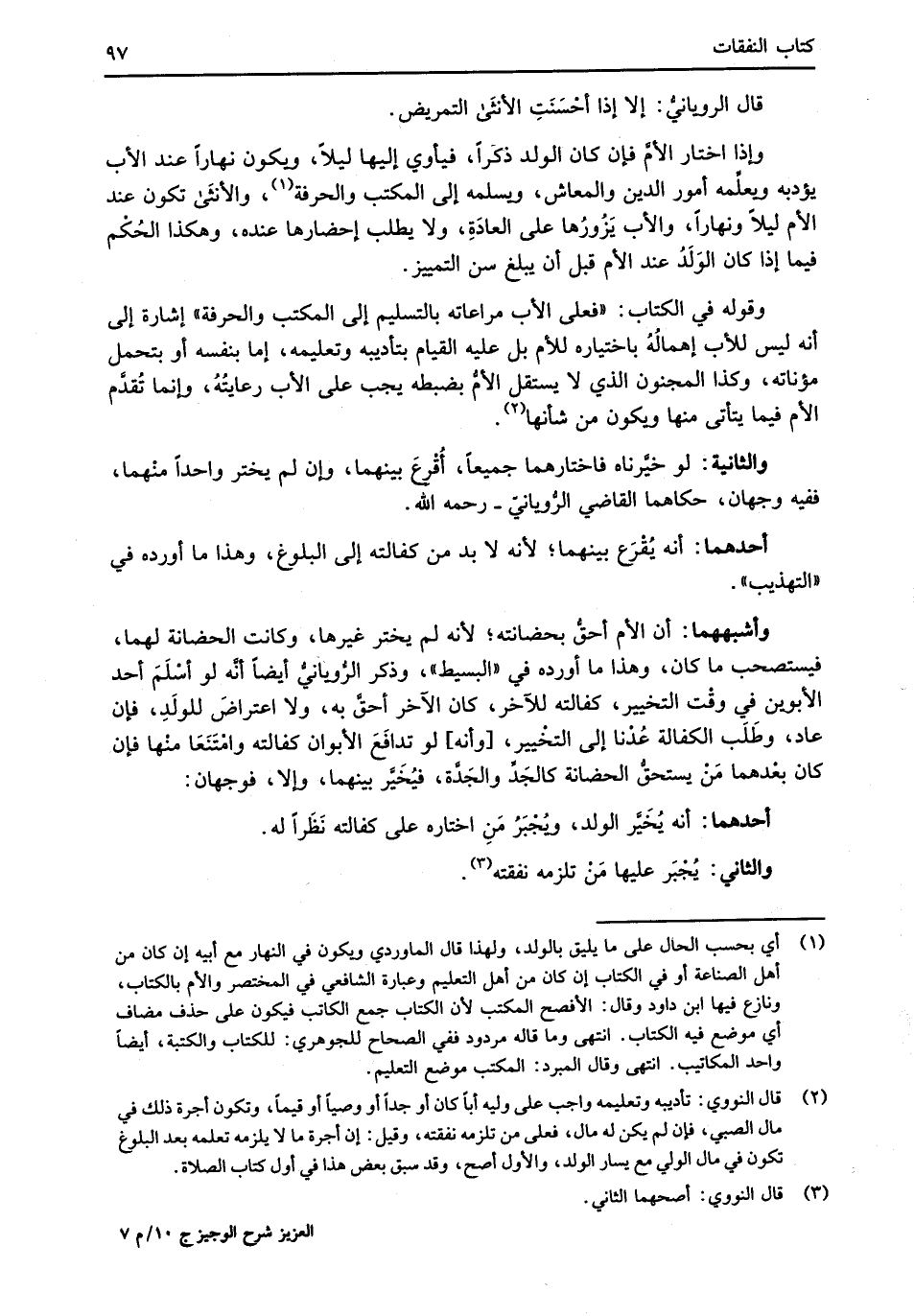 (¬2) قال النووي: تأديبه وتعليمه واجب على وليه أباً كان أو جداً أو وصياً أو قيماً، وتكون أجرة ذلك في مال الصبي، فإن لم يكن له مال، فعلى من تلزمه نفقته، وقيل: إن أجرة ما لا يلزمه تعلمه بعد البلوغ تكون في مال الولي مع يسار الولد، والأول أصح، وقد سبق بعض هذا في أول كتاب الصلاة.