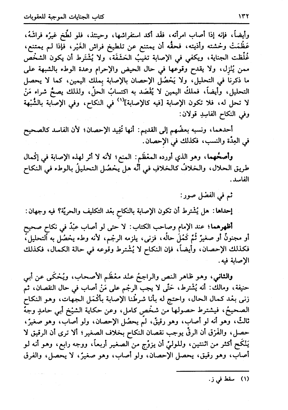 أظهرهما؛ عند الإِمام وصاحب الكتاب: لا حتى لو أصاب عبْدٌ في نكاحٍ صحيحٍ أو مجنونٌ أو صغيرٌ ثُمَّ كَمُلَ حالُه، فزنى، يلزمه الرجْم؛ لأنه وطء يحْصُل به التحليل، فكذلك الإحصان، وأيضاً، فإن النكاح لا يُشْترط وقوعه في حالة الكمال، فكذلك الإصابة فيه.