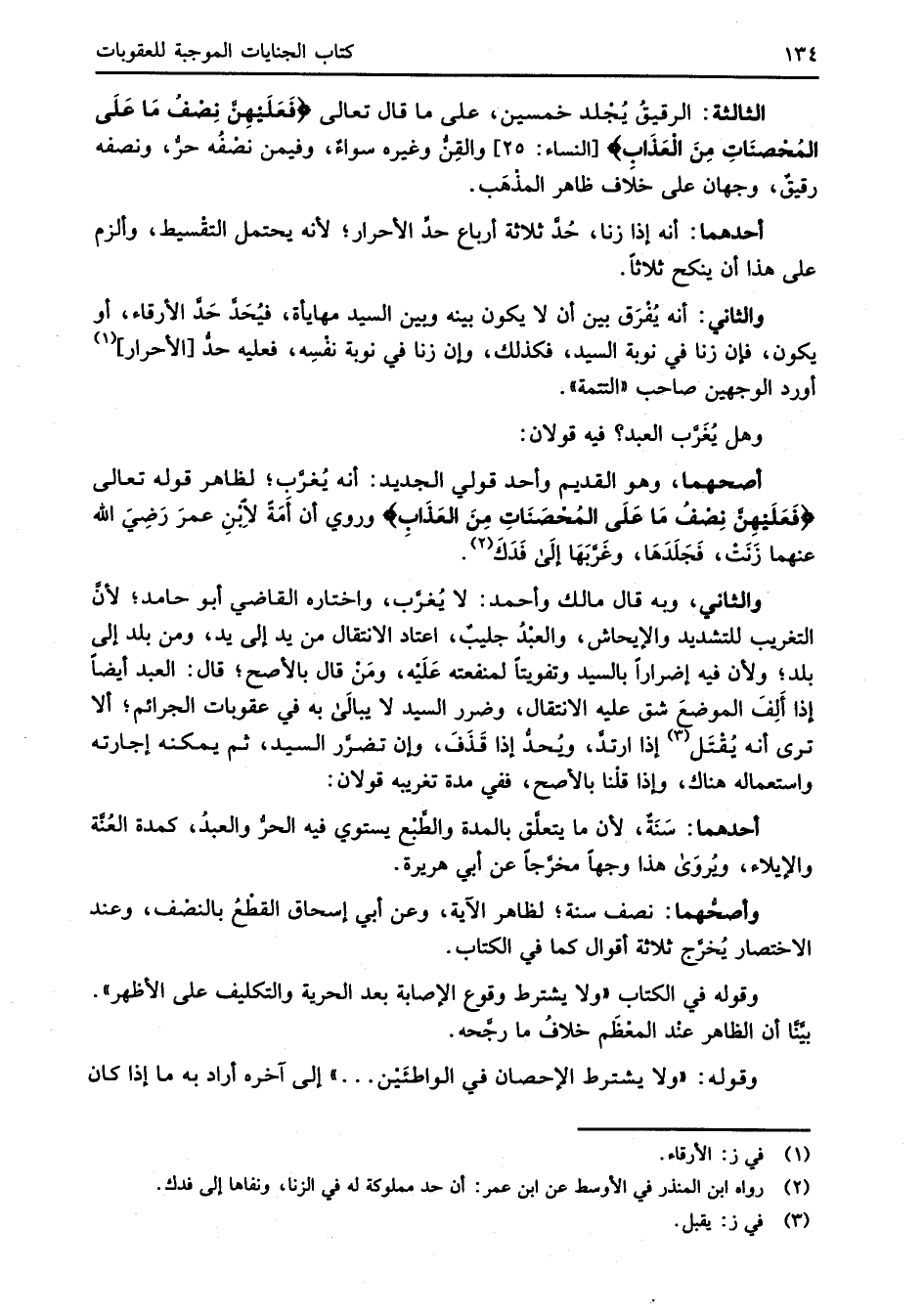 الثالثة: الرقيقُ يُجْلد خمسين، على ما قال تعالى {فَعَلَيْهِنَّ نِصْفُ مَا عَلَى الْمُحْصَنَاتِ مِنَ الْعَذَابِ} [النساء: 25] والقِنُّ وغيره سواءٌ، وفيمن نصْفُه حرٌّ، ونصفه رقيقٌ، وجهان على خلاف ظاهر المذْهَب.