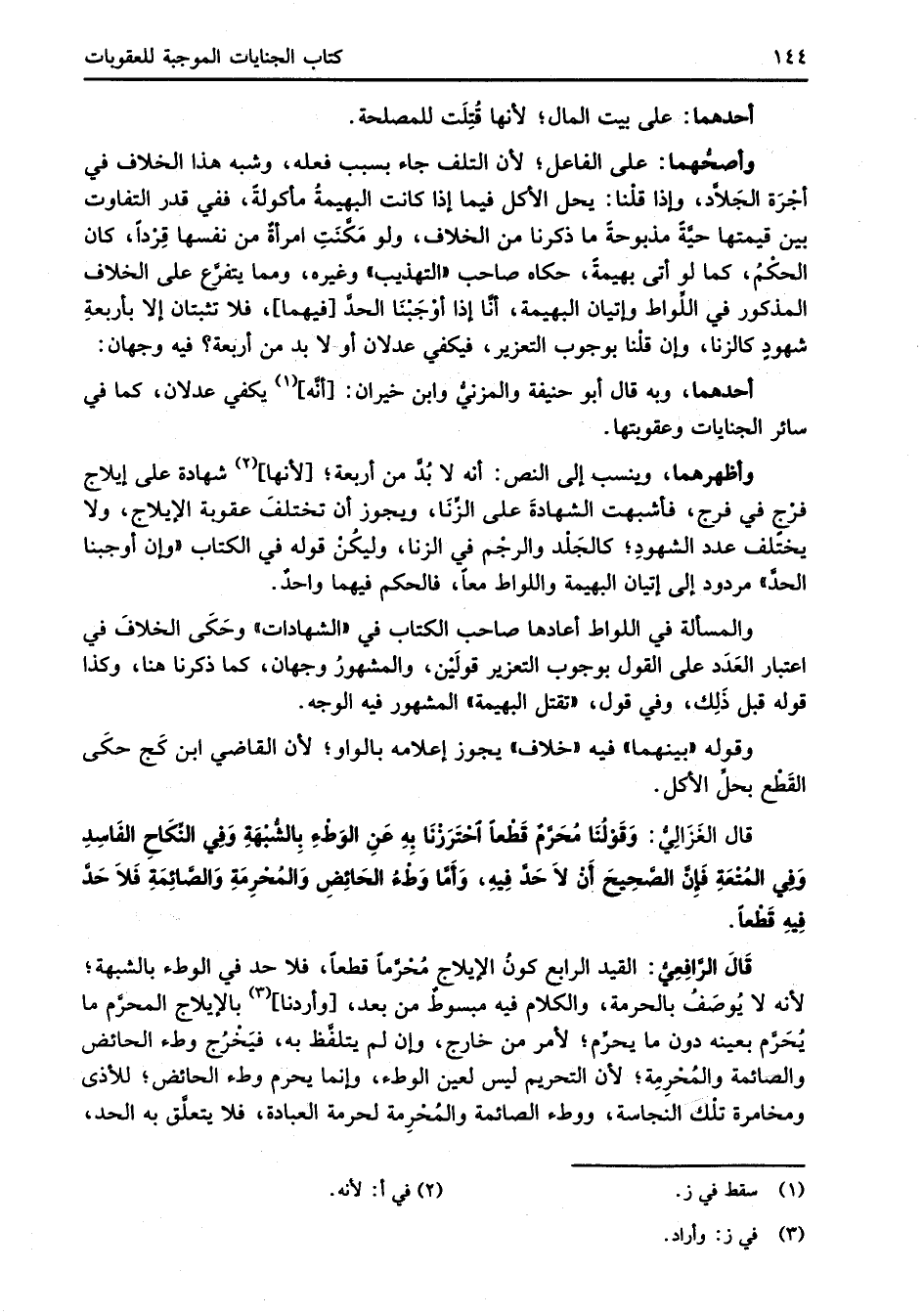 قَالَ الرَّافِعِيُّ: القيد الرابع كونُ الإيلاج مُحْرَّمًا قطعاً، فلا حد في الوطء بالشبهة؛ لأنه لا يُوصَفُ بالحرمة، والكلام فيه مبسوطٌ من بعد، [وأردنا] (¬3) بالإيلاج المحرَّم ما يُحَرَّم بعينه دون ما يحرِّم؛ لأمر من خارج، وإن لم يتلفَّظ به، فيَخْرُج وطء الحائض والصائمة والمُحْرِمِة؛ لأن التحريم ليس لعين الوطء، وإنما يحرم وطء الحائض؛ للأذى ومخامرة تلْك النجاسة، ووطء الصائمة والمُحْرِمة لحرمة العبادة، فلا يتعلَّق به الحد،