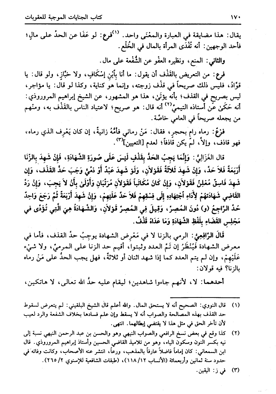 (¬2) كذا وقع في بعض نسخ الرافعي والصواب النيهي وهو والحسن بن عبد الرحمن النيهي نسبة إلى نيه بكسر النون وسكون الياء، وهو من تلاميذ القاضي الحسين وأستاذ إبراهيم المروروذي. قال ابن السمعاني: كان إماماً فاضلاً عارفاً بالمذهب، ورعاً، انتشر عنه الأصحاب، وكانت وفاته في حدود سنة ثمانين وأربعمائة (الأنساب 12/ 118)، (طبقات الشافعية للإسنوي 2/ 265).