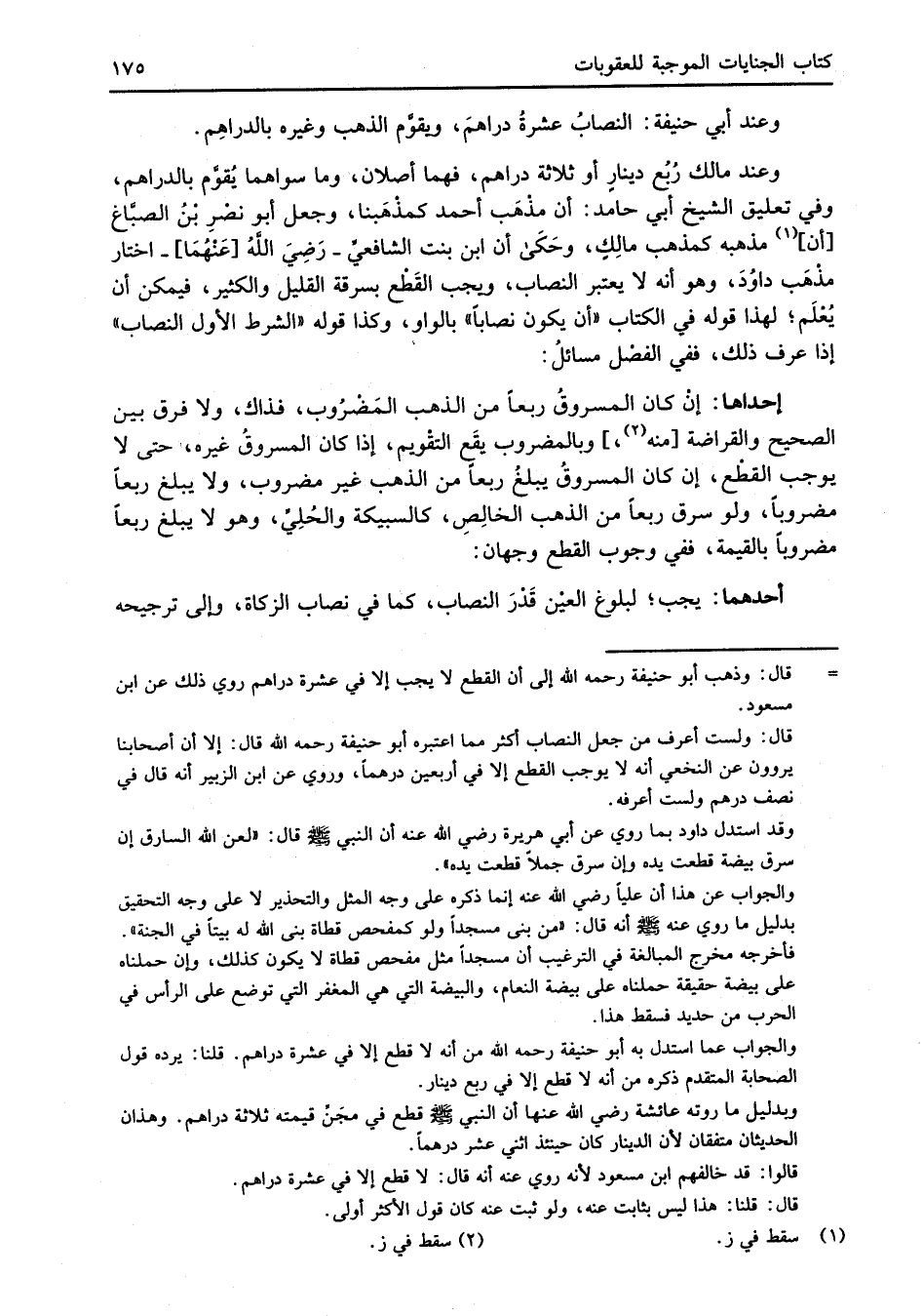 = قال: وذهب أبو حنيفة رحمه الله إلى أن القطع لا يجب إلا في عشرة دراهم روي ذلك عن ابن مسعود.