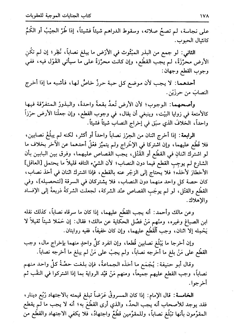 الخامسة: قال الإِمام: إذا كان المسروقُ عَرَضاً تبلغ قيمته بالاجتهاد رُبُع دينار، فقد يوجد للأصحاب أنه يجب الحدُّ، والذي أرى القطْعَ به؛ أنه لا يجب ما لم يقطع المقوِّمون بأنها تبْلُغ نصاباً، وللمقوِّمين قطْعٌ واجتهادٌ، فلا يكفي الاجتهاد والقطْع من