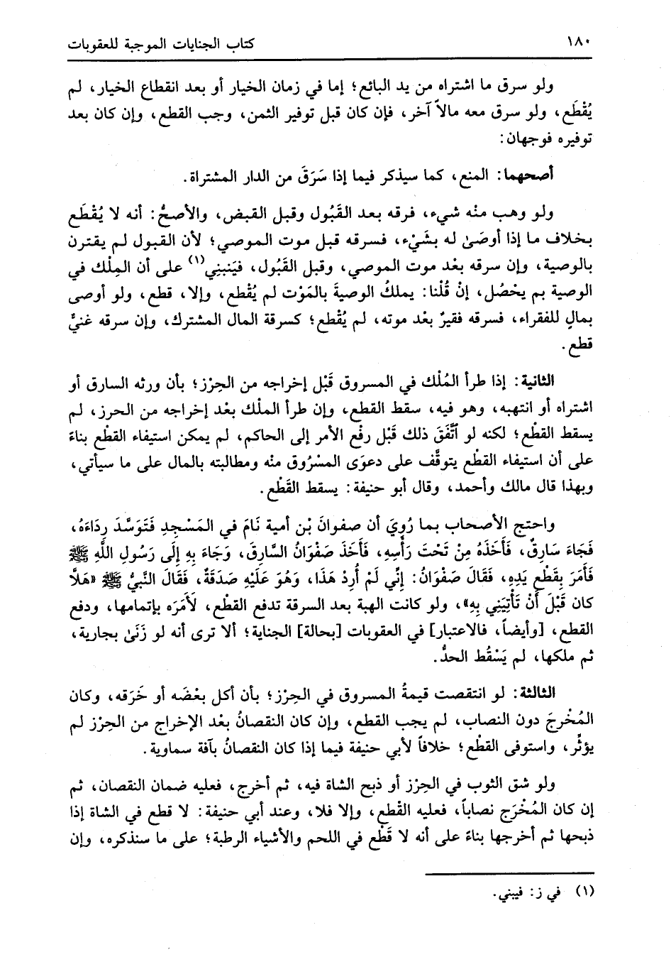 واحتج الأصحاب بما رُويَ أن صفوانَ بْن أمية نَامَ في المَسْجِدِ فَتَوَسَّدَ ردَاءَهُ، فَجَاءَ سَارِقٌ، فَأَخَذَهُ مِنْ تَحْتَ رَأْسِهِ، فَأَخَذَ صَفْوَانُ السَّارِقَ، وَجَاءَ بِهِ إِلَى رَسُولِ اللهِ -صلى الله عليه وسلم- فَأَمَرَ بِقَطْع يَدِهِ، فَقَالَ صَفْوَانُ: إِنِّي لَمْ أُرِدْ هَذَا، وَهُوَ عَلَيْهِ صَدَقَةٌ، فَقَالَ النَّبيُّ -صلى الله عليه وسلم- "هَلاَّ كان قَبْلَ أَنْ تَأْتِيَنِي بِهِ"، ولو كانت الهبة بعد السرقة تدفع القطْع، لَأَمَرَه بإتمامها، ودفع القطع، [وأيضاً، فالاعتبار] في العقوبات [بحالة] الجناية؛ ألا ترى أنه لو زَنَى بجارية، ثم ملكها، لم يَسْقُط الحدُّ.