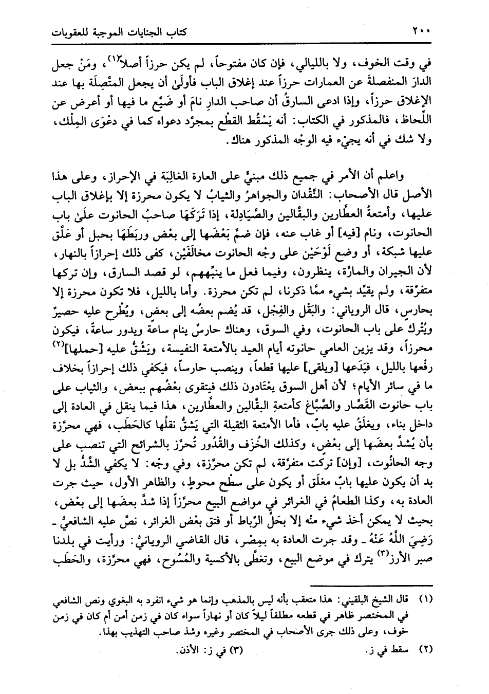 (¬1) قال الشيخ البلقيني: هذا متعقب بأنه ليس بالمذهب وإنما هو شيء انفرد به البغوي ونص الشَّافعي في المختصر ظاهر في قطعه مطلقاً ليلاً كان أو نهاراً سواء كان في زمن أمن أم كان في زمن خوف، وعلى ذلك جرى الأصحاب في المختصر وغيره وشذ صاحب التهذيب بهذا.
